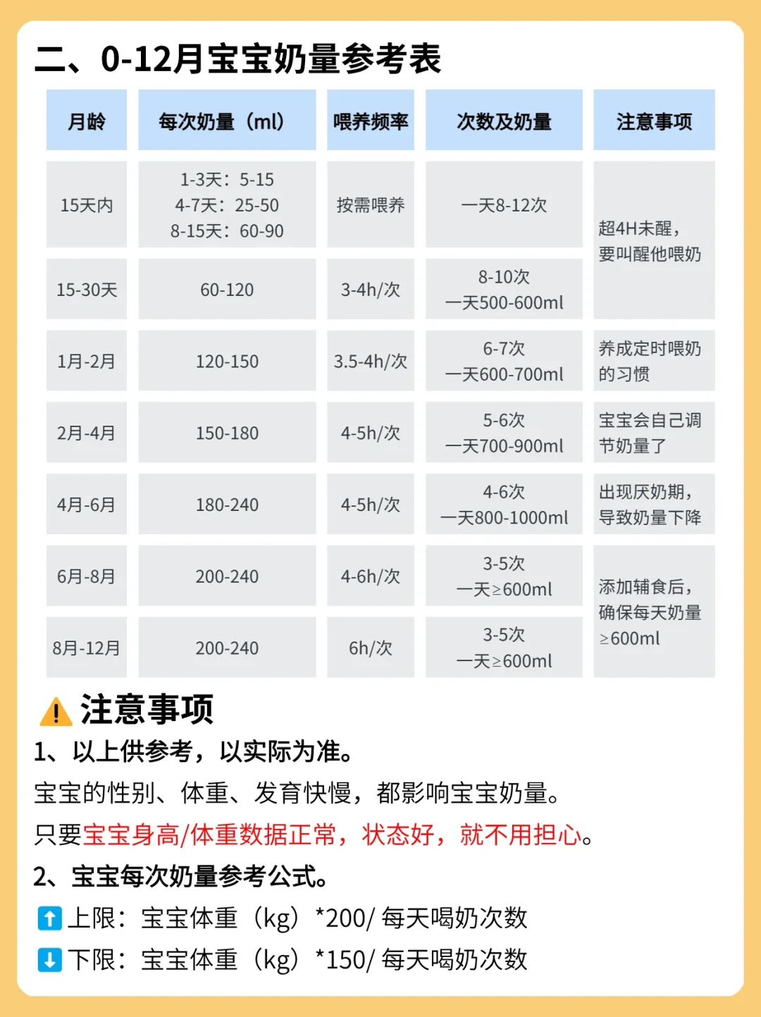 2⃣0-12月宝宝奶量参考表