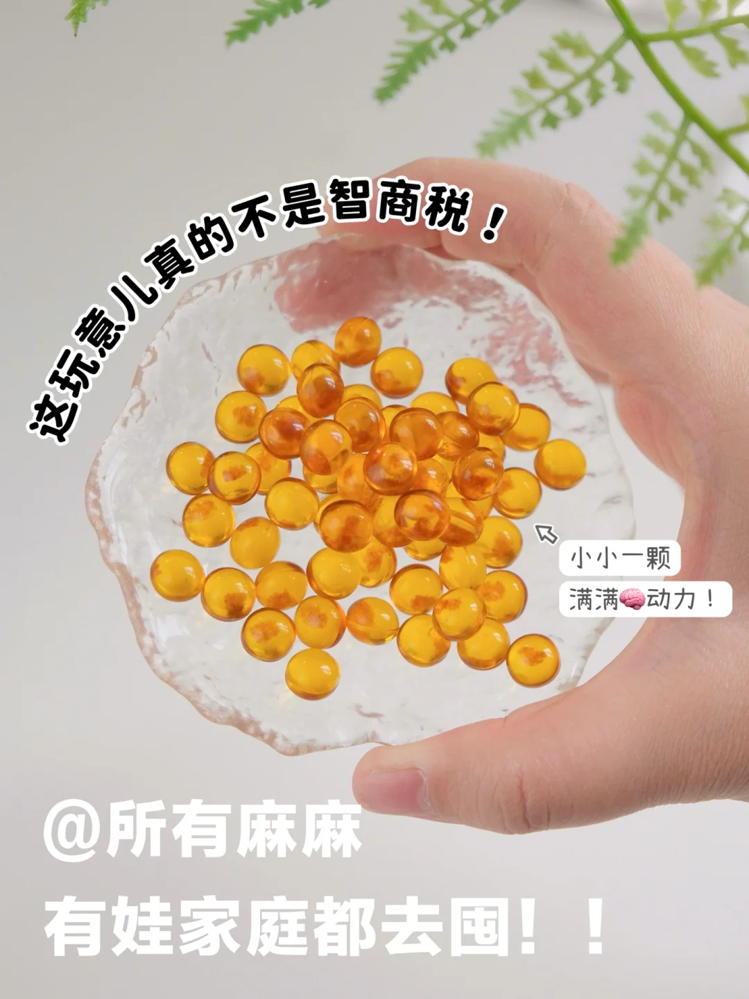 😋而且味道真的很好!DHA这类的孩子不愿意吃的话,很头疼又浪费钱!这个小金珠,牙长好的宝宝甚至可以嚼着吃!香香甜甜的草莓味,再加上Q弹柔软的外皮,宝宝一口一个,真的超喜欢~