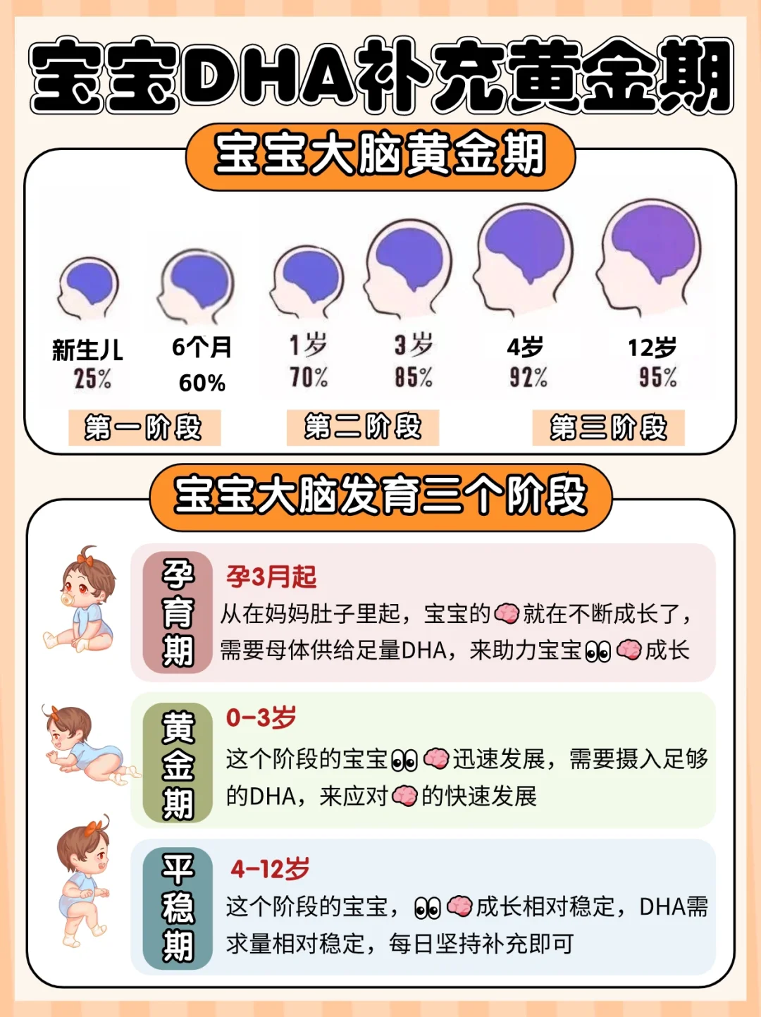 👼🏻黄金期:0-3岁是宝宝🧠发育黄金期,这个阶段需要摄入足够的DHA,来应对宝宝的快速发展