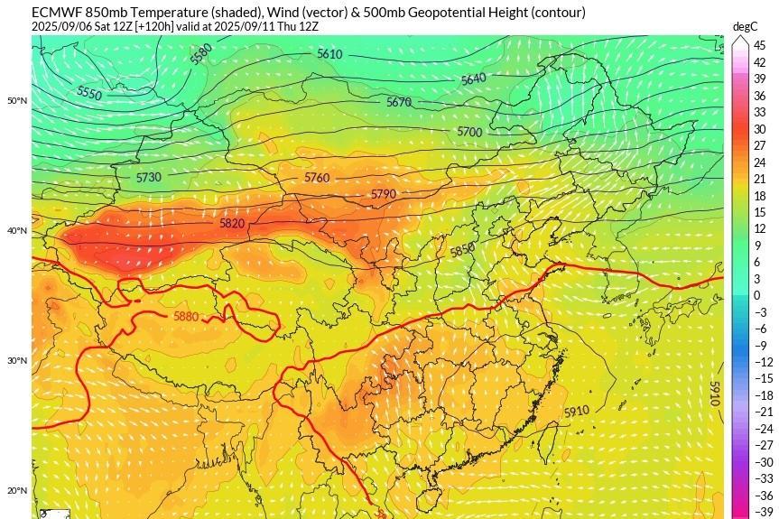 受异常偏强偏北的副高影响,预计10-12号我国西北东部、江汉北部、黄淮中南部地区将自西向东迎来一轮大范围强降雨天气,甘肃东部、陕西南部、河南中北部、山东中南部地区将出现中到大雨,陕西南部、河南中北部、山东南部有暴雨局部大暴雨,最大日雨量可达100-150毫米。各地区累计雨量普遍在50-80毫米,局部150-200毫米。 从形势场预报来看,这一轮降雨的副高位置和强度类似于常年7月上旬,也就是说这种黄淮流域的强降雨原本应该出现在7月,当地朋友要以应对盛夏暴雨的态度来应对即将到来的这场强降雨,不能因为已经到了9月中旬就掉以轻心。不过9月的冷空气还是有点威力的,预计临近的降雨范围会比现在更往南调整一些强降雨中心还是在河南中北部、山东南部、苏皖北部一带。
