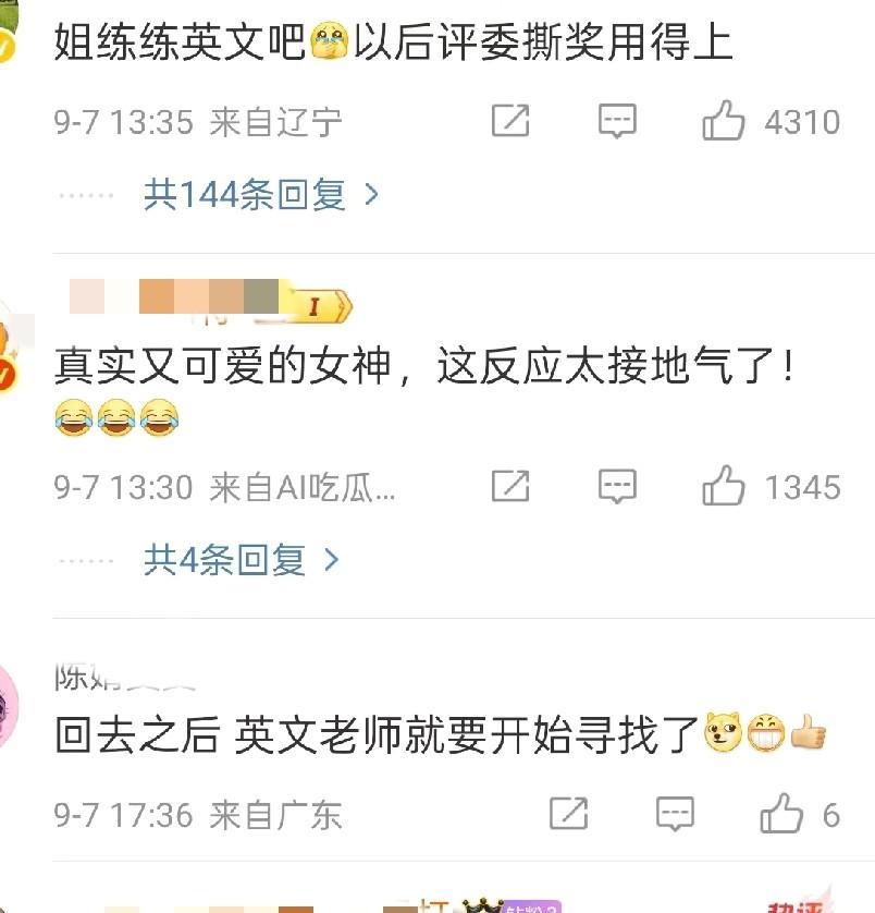 辛芷蕾拿下威尼斯最佳女主角后,有记者用英语采访她,说了一大串,辛芷蕾一脸迷茫的问旁边的翻译:“什么东西?”翻译解释说这个记者是在提问她,获得威尼斯影后时是什么感觉。 辛芷蕾听了翻译的话后,点了点头,然后用中文回答了记者。 网友们看到这一段采访后,发出了两种声音。 第一种是,大家觉得辛芷蕾都走向国际了,也应该好好把英语学起来了,特别是她十几年前就给自己立了走向国际舞台的目标,那么英语就不该落下,不懂英语出国别人说什么都听不懂,也不利于和国外的演员交流啊。 最关键的是,她都拿影后了,还不会说英语,这不接受惹人笑话吗? 第二种是,大家觉得辛芷蕾是中国人,演的也是中文电影,拿奖靠的是演技,不是英语,用中文回答外国记者更显大国风范和底气。 而且辛芷蕾在不会英语的情况下面对再婚记者的提问并没有紧张和窘迫,反而很松弛随意,这就是骨子里的自信,让人佩服!