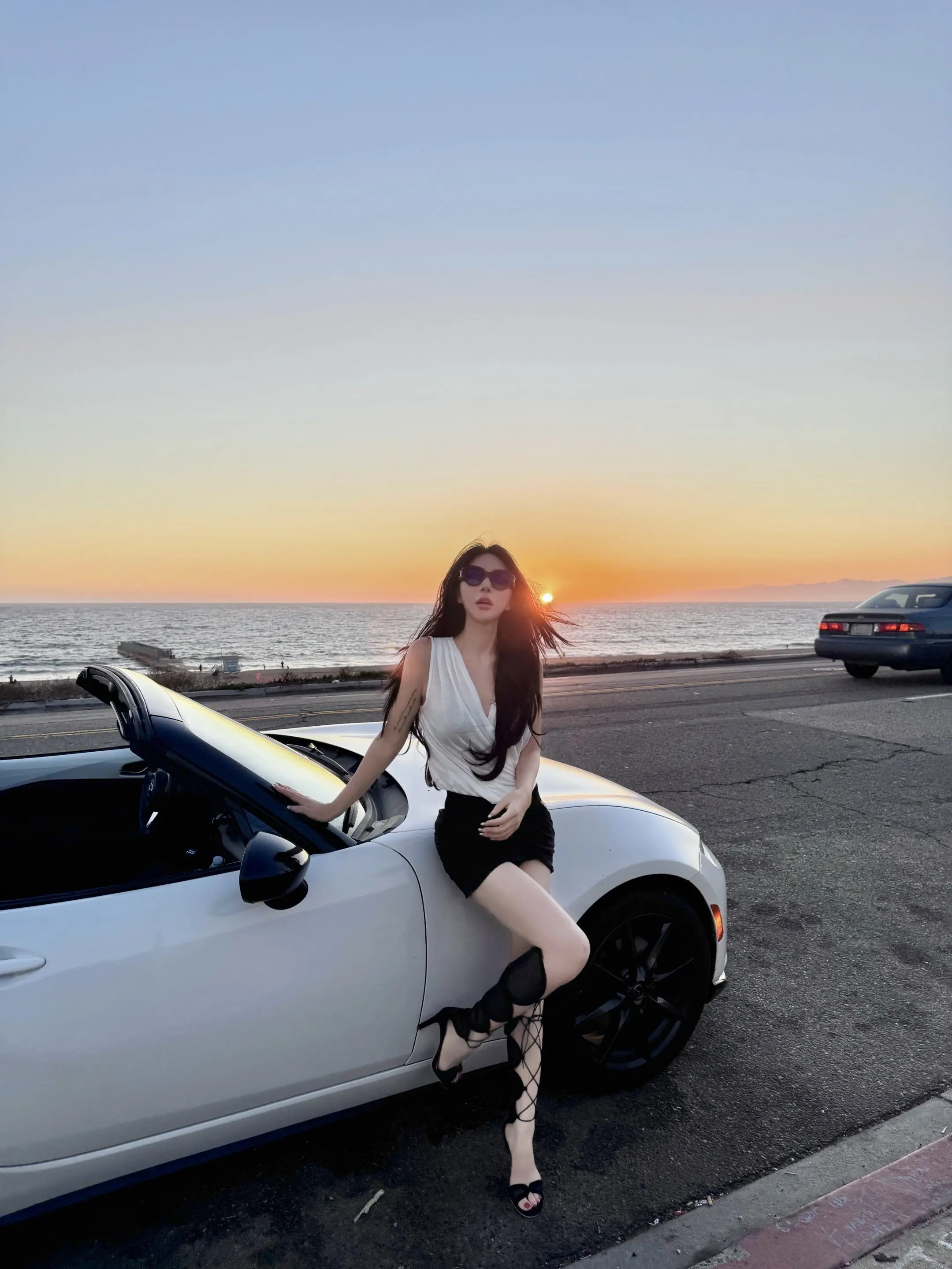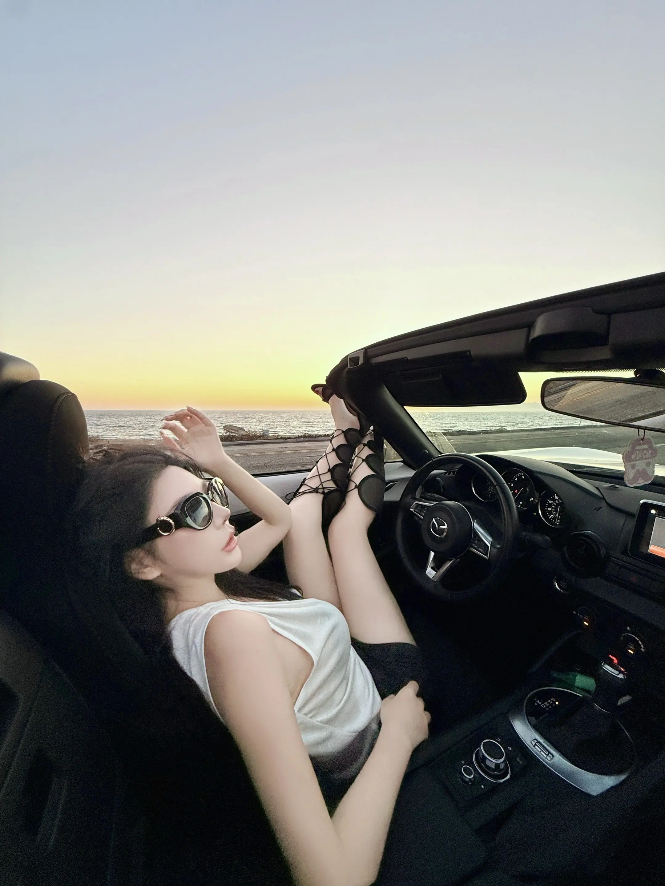 白衬衫的衣料在车内的暖光里泛着柔和的光泽,她静靠在车窗旁,目光追着雨珠划过玻璃的