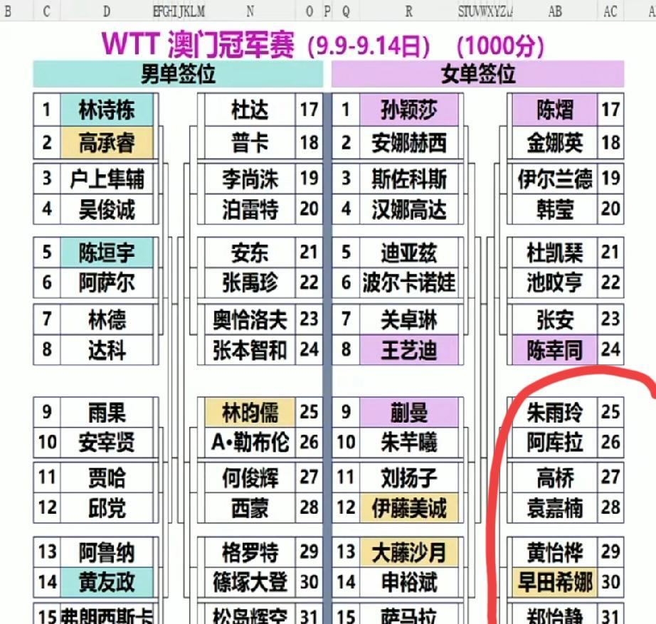 澳门冠军赛! 王曼昱的签位下下签! 王曼昱运气不太好,自己独守小半区,遇到的对手