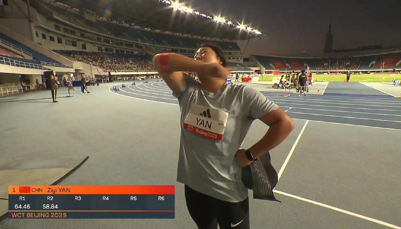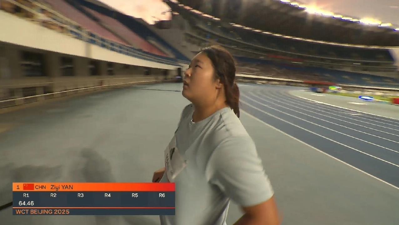 第一投就锁定冠军!严子怡大战群芳笑到最后 64米46,虽然这是一个让严子怡难言满