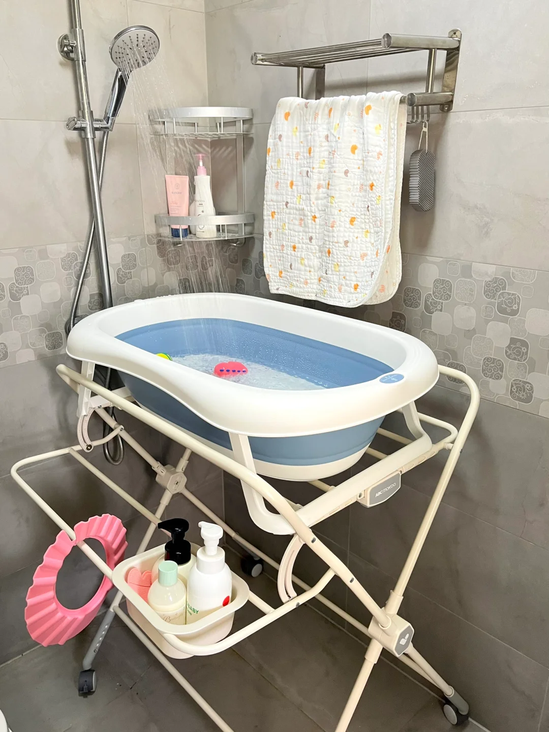 浴盆放上去尿布台当一个支架,承重力杠杠滴,很稳固,给宝宝洗澡也不用弯腰