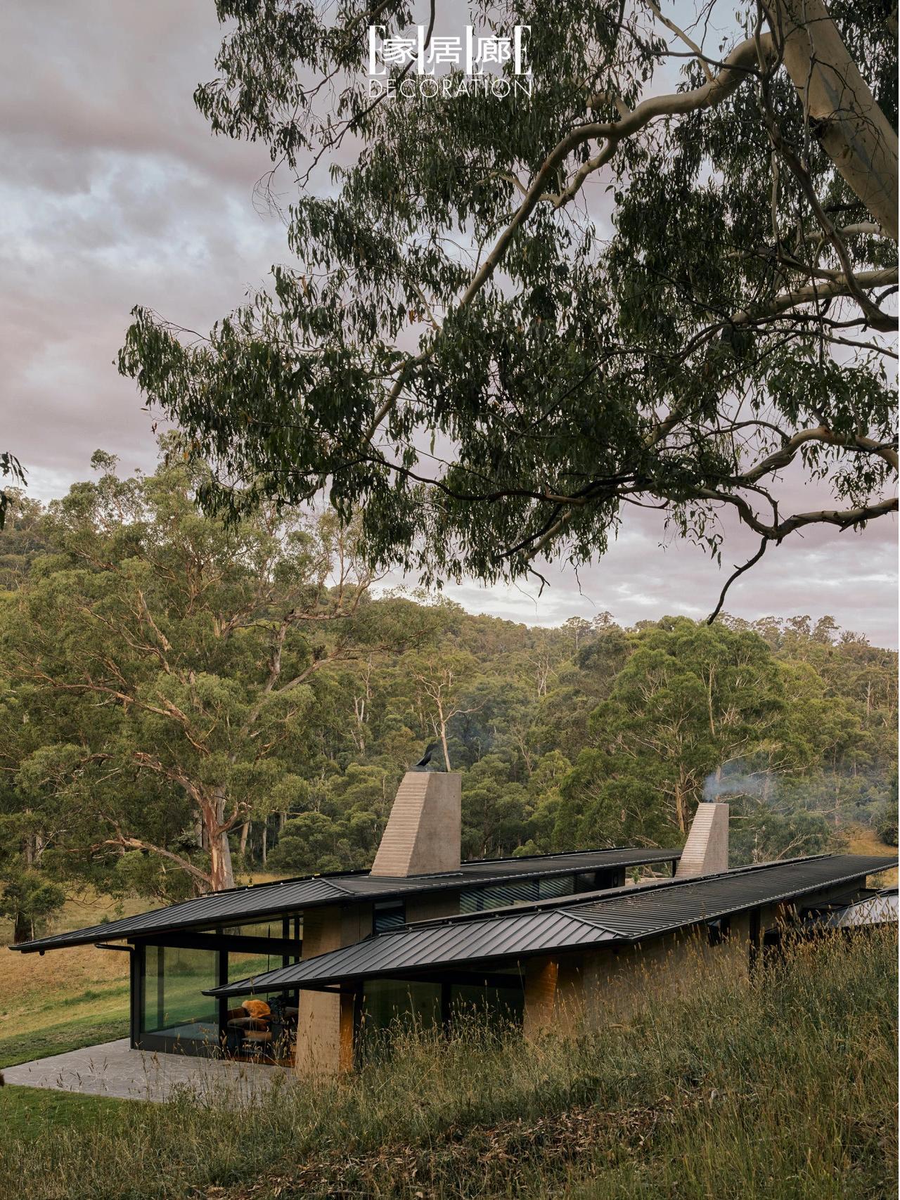 Howqua River Lodge是澳大利亚建筑师Rob Mills对技术与自然的双重礼赞。它在澳大利亚一片静谧的高山河谷之间,顺应地势、借光取风而建。为了实现真正的“自给自足”可持续,Rob Mills运用了诸多先进甚至先锋的技术手段。但这绝不是某种张扬的炫技,而是对山谷之灵的温柔回应。不以建筑或科技为名来统治或改造自然,而是理解自然的基础上,与自然共生共居,或者也可以说Howqua River Lodge不过是自然的延展罢了,也因此,居住于其中的人,才能真正地感受土地、风、高山、河流与其他。