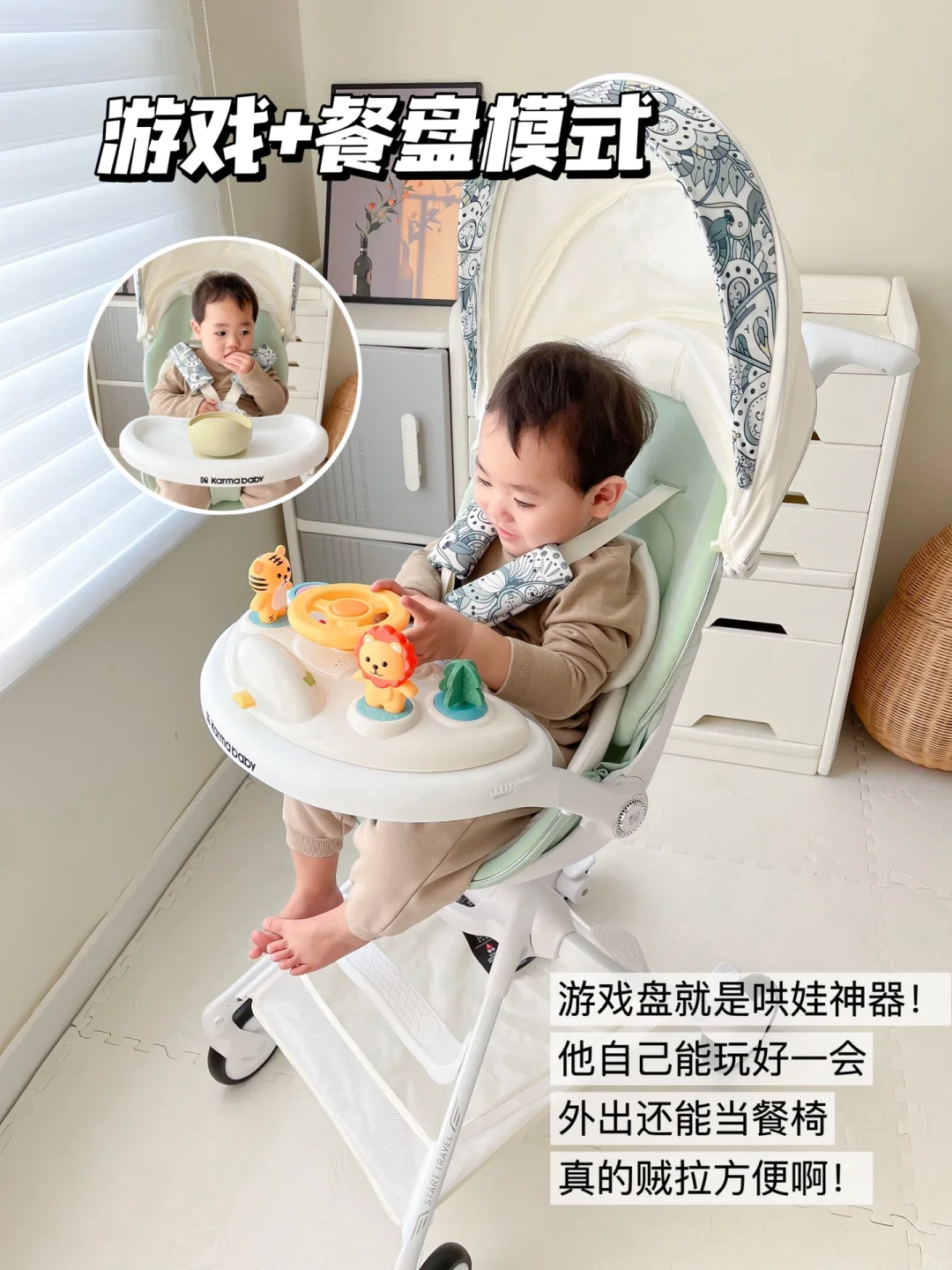 扶手可以换成游戏盘,宝宝自己玩,妈妈解放双手,离地62cm高景观,还可以当餐椅,外出吃饭很方便,避免坐外边不干净的餐椅