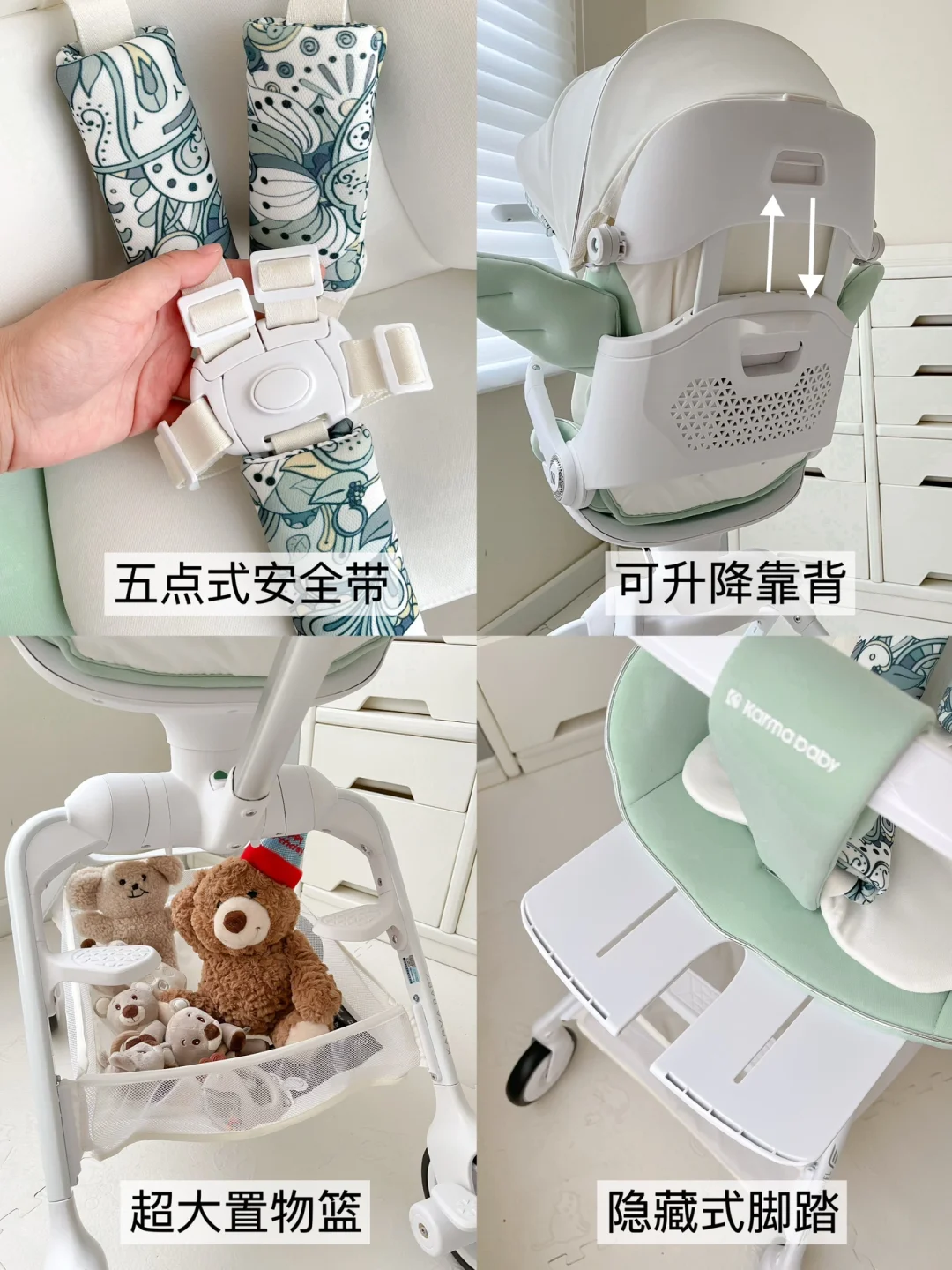还有一些小细节设计的也很贴心,超大置物篮、隐藏脚踏、可调节靠背、五段遮阳篷、一键刹车等等……我想要的没想到的它都满足了!