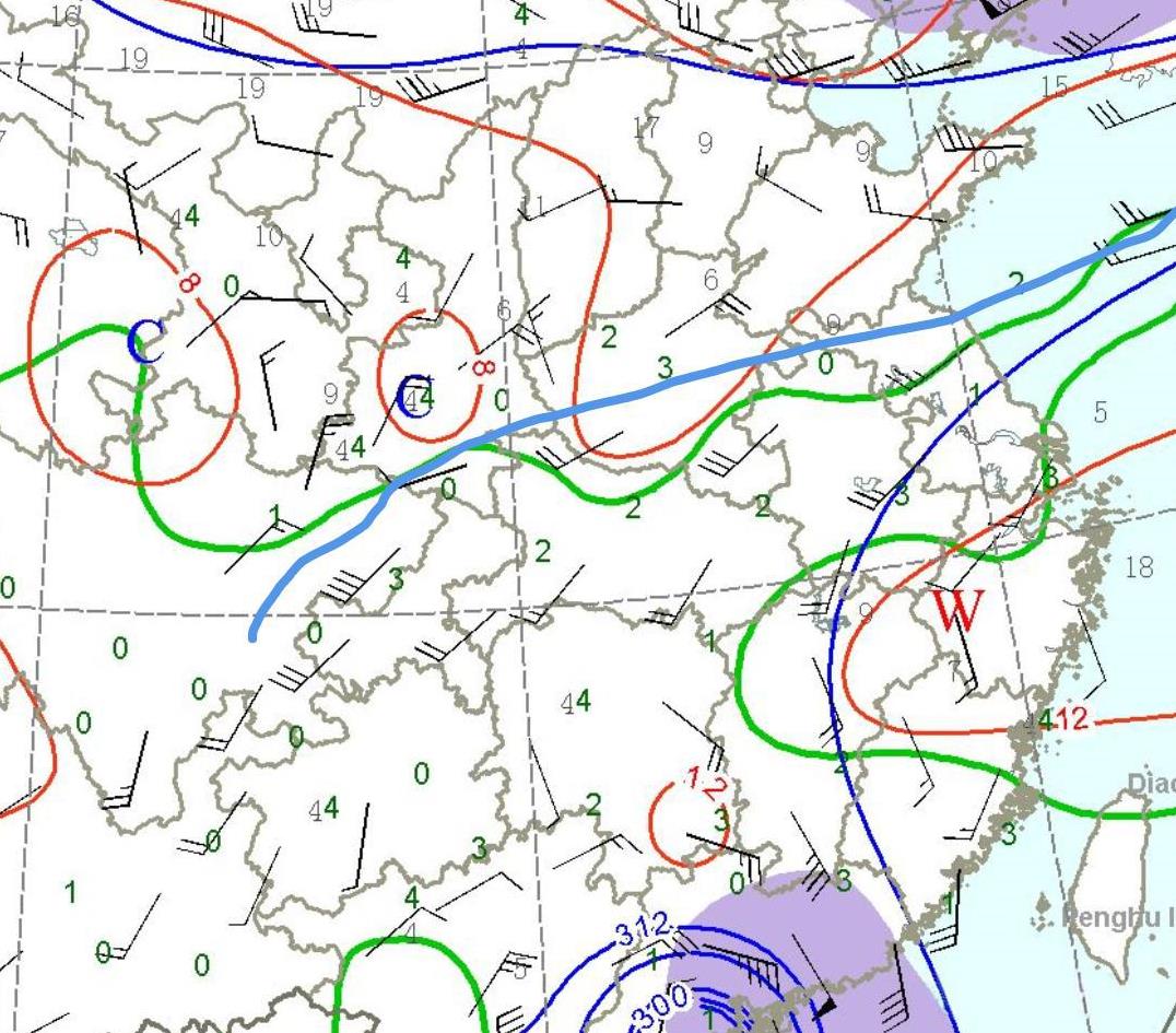 从今天的天气图实况来看,副热带高压和陆地高压已经断裂开了。 今天副热带高压主要影