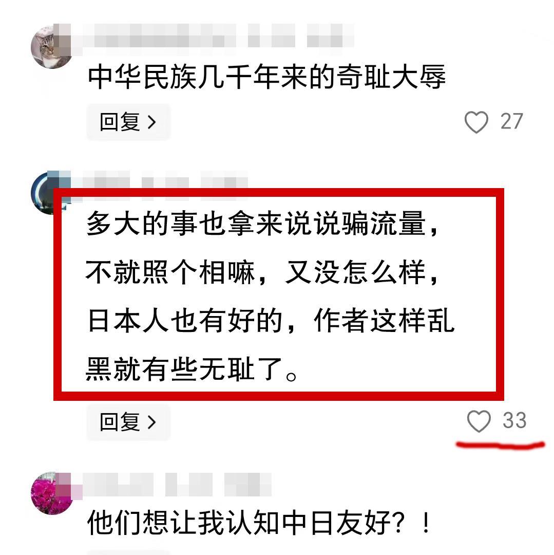 万万没想到,前不久写了一篇文章,对日军记者拍摄的这张照片进行了揭露,结果有个网友在评价区大加指责,还说笔者无耻。 这张照片是日军记者柏原英一1938年5月在汉口拍摄。当时他和几个同伙在一幢西方人的建筑前,看到一个小女孩很可爱,便和她拍了这张合影。可是,从小女孩惊恐的表情上,是个人都能看出当时是怎样的情景。建筑的玻璃大门内,箭头所指处有个成年男人在观看,柏原英一离开没多远,看到那个男人出来后紧紧抱着小女孩,而小女孩则哭出了声,他猜测两人应该是父女关系。而这张照片的注解文字中,不乏流露着得意和对小女孩父亲的蔑视。 日寇强行和小女孩合影,父亲却不敢上前制止,足以说明,在日寇的铁蹄下,除了汉奸以外的中国人,是多么弱小和无助。 可是,这个网友的评论,颠覆了我的认知。日本兵确实没怎么样,但违背对方意愿强行合影,就是对人格和尊严的强暴。假如这位网友也有女儿,是不是任何一个男人强迫和他女儿合影,他都会喝彩呢?即使明知对方劣迹斑斑。而更颠覆我的是,这条评论的点赞量,比上下两条都多。 到底谁无耻?