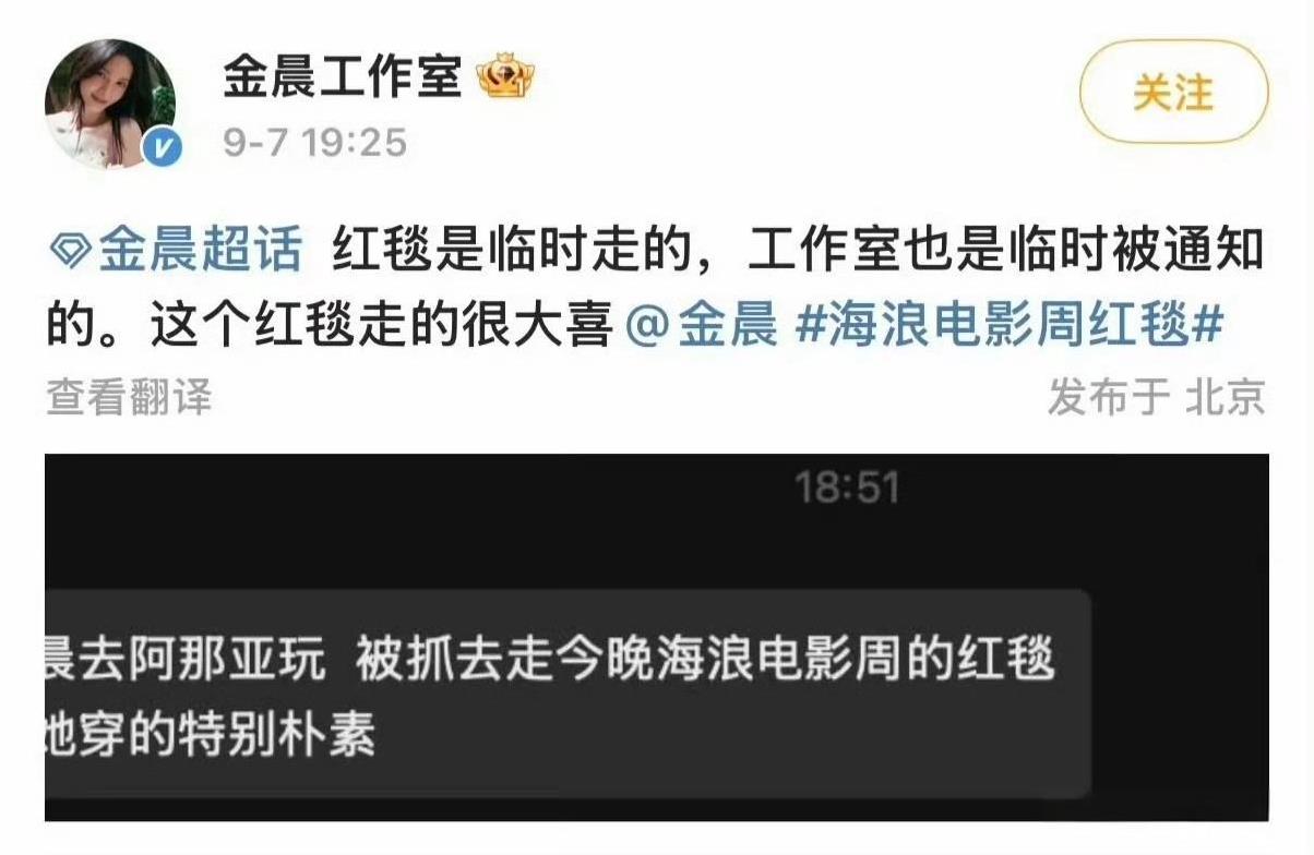 #没人通知 金晨这是红毯吗# 居然是临时被抓去走的红毯!但姐姐一身素净反而有种松弛感,照样好看![期待]