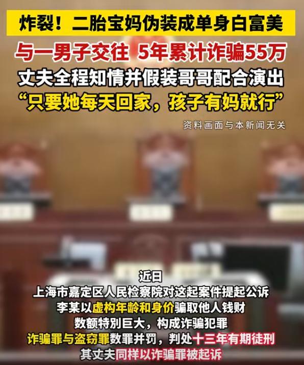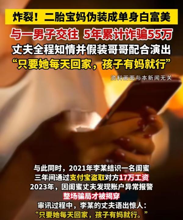 三观够炸裂吧!这个上海丈夫允许妻子“出轨”,要求是只要她每天回家,而孩子有妈妈喊就行,妻子和情人约会时,丈夫就充当“哥哥”,还会去酒店给妻子送衣服,也会在参与他们的饭局,这丈夫让我打开眼界了。 王某(化名)与丈夫两人是经过相亲认识的,当时两人都到饿了结婚的年纪,觉得双方条件都挺好的,随后两人直接结婚了。 婚后两人很快就生下了一对双胞胎,虽然之后两人之间经常吵架且没有太多的感情基础,但因孩子的缘故,还是勉强的生活在一起了。 不料没过多久,装复却发现王某在社交平台上同时给好几名男子聊天,这时丈夫看见之后有些许生气,于是就质问了王某说让她好好在家照看孩子不用干那些不三不四的事情。 王某虽然表面答应了但是私下还是经常这些陌生男子聊天,纸终究是包不住火的,过了几天了之后丈夫又发现了,王某见状就给丈夫说让他假扮自己的哥哥这样的话他她就可以骗去陌生男子的钱了。 随后他们两人互相搭配和,王某每隔一段时间就会出来和那名陌生男子约会几次,慢慢的两人感情深厚之后,王某就要求这名陌生男子每个月给她转账一万元作为生活补贴。 与此同时在这个时候丈夫也没有闲着,通过王某的推荐丈夫也与一名女子聊得十分要好,在聊天期间,直接盗取了那名女孩17万元,夫妻二人联合起来,比普通老板姓上班舒服多了。 然而事实上并不会让他们一直这么顺利的进行下去,在2023年的时候那名女子的丈夫发现银行卡里面的钱少了很多于是就直接报了警。 随后他们几人都上了法庭,经法院调查之后揭发了这一整场的骗局,有人问丈夫说他为什么不在乎自己的妻子在外做什么对不起的事情,不料他却当中说自己不需要她,只要每天她能够按时回家照顾孩子就行。 这句话一出很多人都震惊了,但后来想一想自己的妻子能够搞钱还愿意继续留在家里面照顾孩子,这对于他那种人来说算是享受“天伦之乐”了吧。