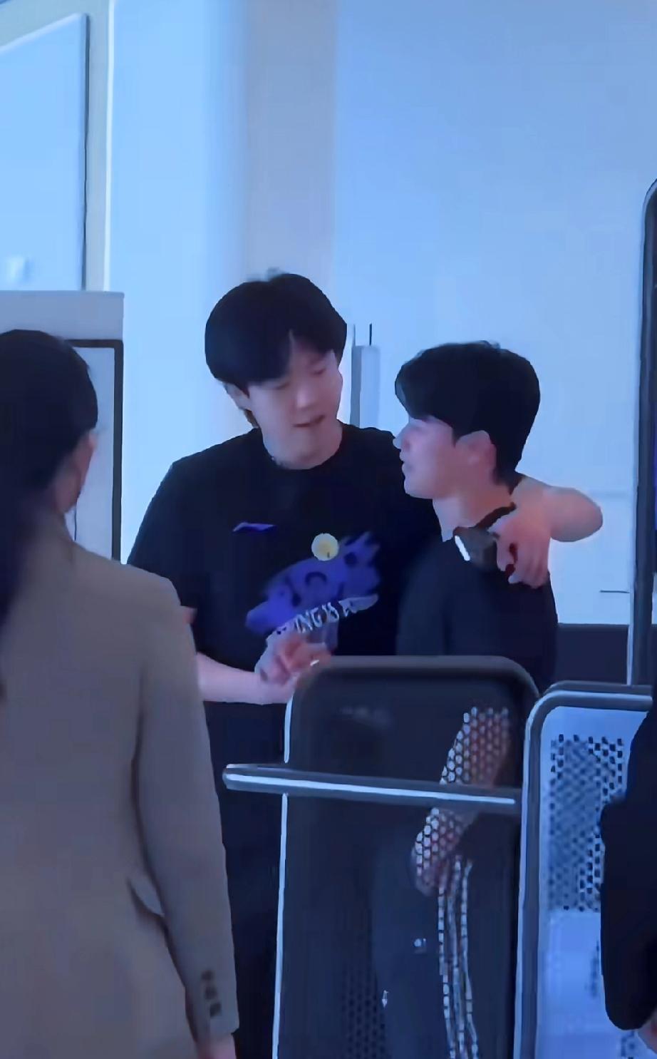 王楚钦遇到男明星安宰贤 王楚钦迈着二五八的步子,和牛牛一起去干饭。 碰到老朋友韩