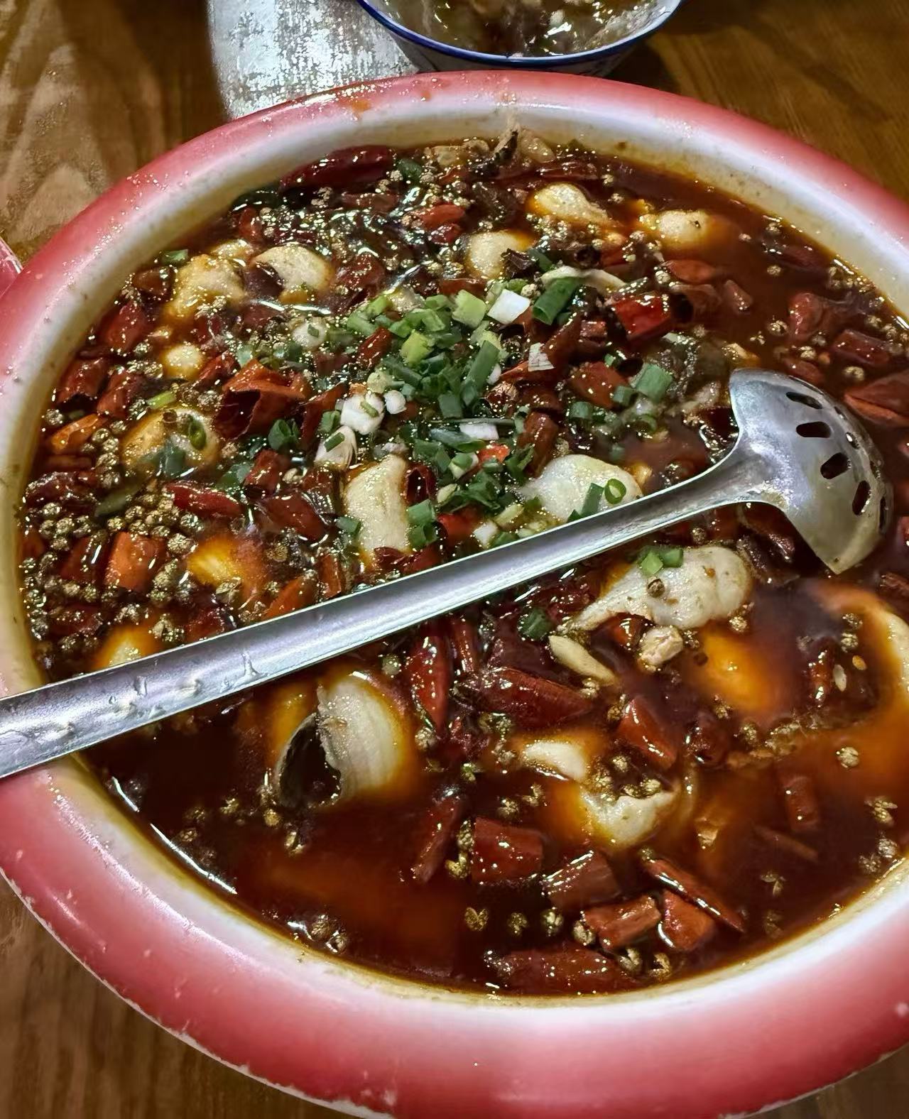 2️⃣.水煮鱼,新鲜江鱼,切片,花椒等调料焖煮,麻辣鲜香。