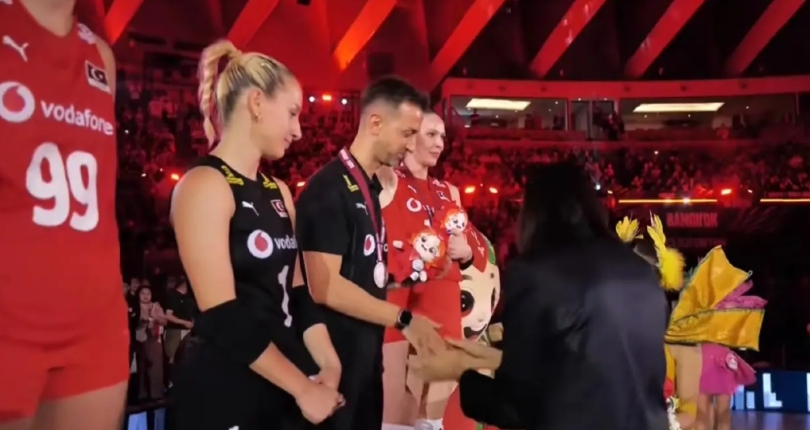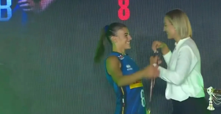 2025年女排世锦赛颁奖嘉宾拉尔森、金软景、努特萨拉三位明星重磅亮相: 为冠军(意大利)颁奖的嘉宾是美国女排前主攻,东京奥运会MVP拉尔森,拉婶曾效力过中国上海女排。 为获得亚军(土耳其)颁奖的则是韩国女排前明星主攻,伦敦奥运会MVP金软景,金哥也效力过中国女排上海女排。 给第三名(巴西)颁奖的嘉宾是前泰国女排黄金一代主力二传努特萨拉,这位估计大家有点陌生。