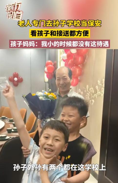 “这就是隔代亲!”9月2日,河南,一名退休大爷为了能看孩子,竟然直接到孙子学校当保安,孩子上学的第一天看到是自己的姥爷,人都傻了,孩子妈妈更是直呼:我小时候都没这待遇!网友:看娃赚钱两不误! 这天,不少地方刚过完开学第一天,孩子们背着书包去学校,这位大爷退休有段时间了,平时在家也没啥特别的事儿,最挂心的就是刚上小学的孙子和外孙,这个小伙子都在一个小学。 之前孙子没上学的时候,大爷天天能陪着孩子玩,可孩子一开学,家里一下子就空了,大爷总觉得心里少点啥,满脑子都是想多见见孙子,后来大爷琢磨来琢磨去,突然有了个主意。 孙子学校不是在招保安嘛,自己身体硬朗,干保安的活儿肯定没问题,要是去学校当保安,既能天天看着孙子,还能有点事儿做,这不两全其美,说干就干,大爷赶紧去学校报名。 经过一番流程,还真就成了学校的保安,等到外孙上学第一天,小家伙背着书包,蹦蹦跳跳地往学校门口走,抬头一看门口值班的保安,瞬间就愣在那儿了,眼睛瞪得圆圆的,半天没反应过来。 这不是自己姥爷嘛,孩子站在原地,好一会儿才缓过神,没想到每天送自己上学的姥爷,竟然成了学校门口的保安,那模样逗得周围人都笑了。 孩子妈妈知道这事儿后,直念叨着:我小时候哪有这待遇啊,我爸那时候忙工作,都没这么天天围着我转,现在对孙子是真上心,不得不说,这个大爷太会想方法了。 既能看着孙子,还能挣点零花钱,真是“看娃赚钱两不误”,老人们把对晚辈的爱,都藏在这些不起眼的举动里,看着普通,却满是温情。 信息来源:《老人专门去孙子学校当保安,看孩子和接送都方便,孩子妈妈:我小的时候都没有这待遇》都市频道