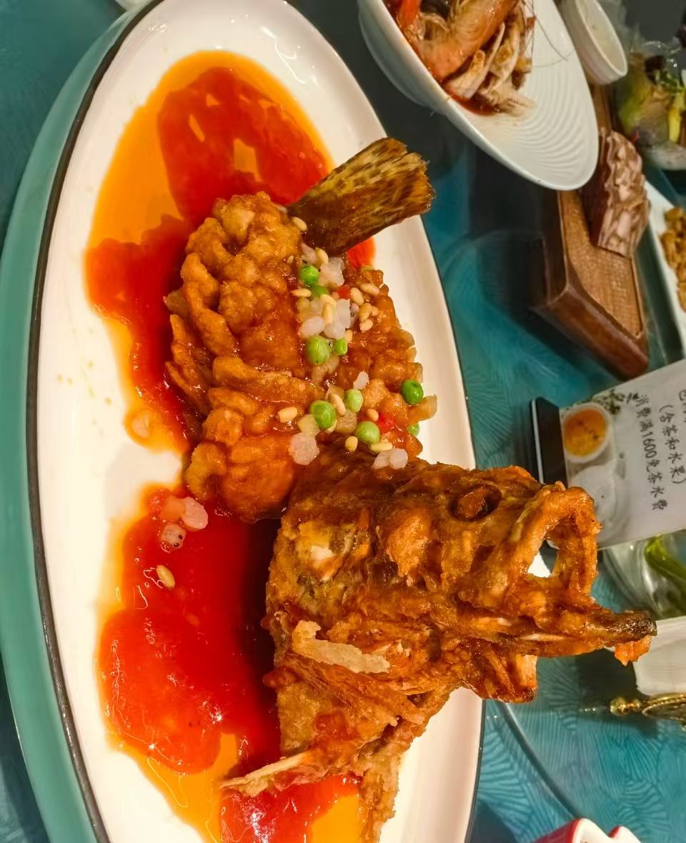 3️⃣.松鼠桂鱼,桂鱼打了十字花刀,直接挂糊炸,外皮酥到掉渣。