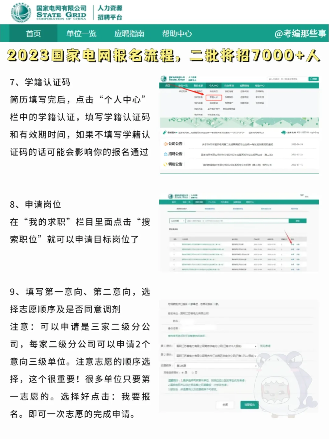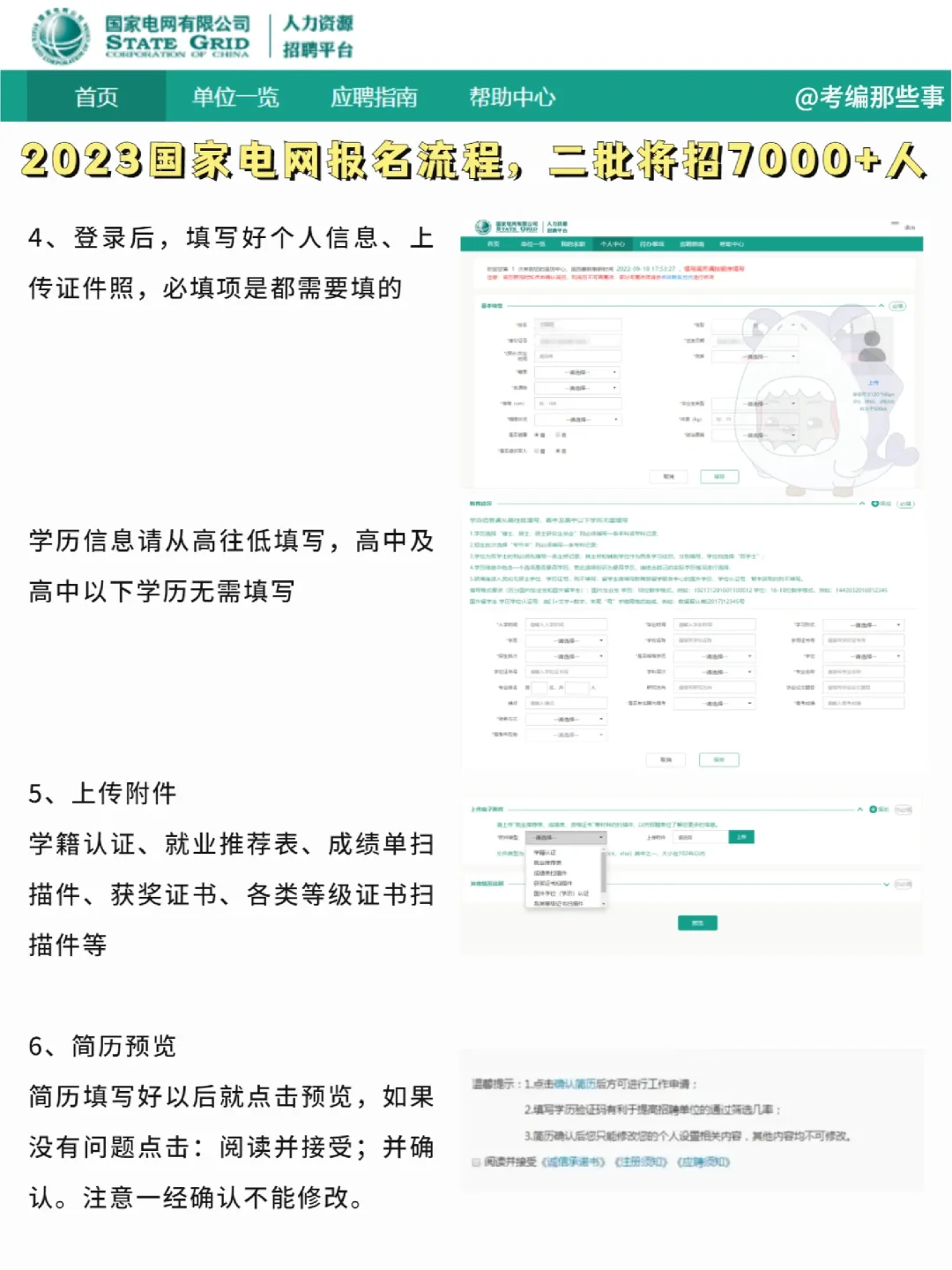2023国家电网第二批将招 7000+人,预计4月份发布,专业要求为电工类、电子信息类、其他工学类、财务类、管理类和其他专业,部分需要大学英语四级。国家电网报名流程如下