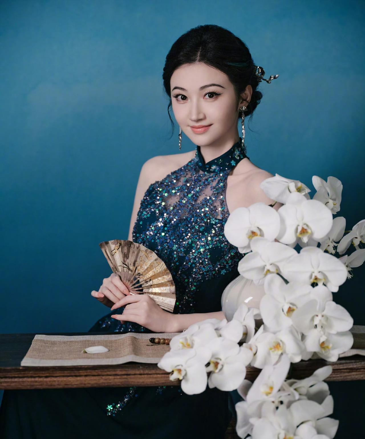 景甜生图气色真棒 景甜的东方美真的刻在骨子里!一袭黛色礼裙勾勒出曼妙身姿优雅大气