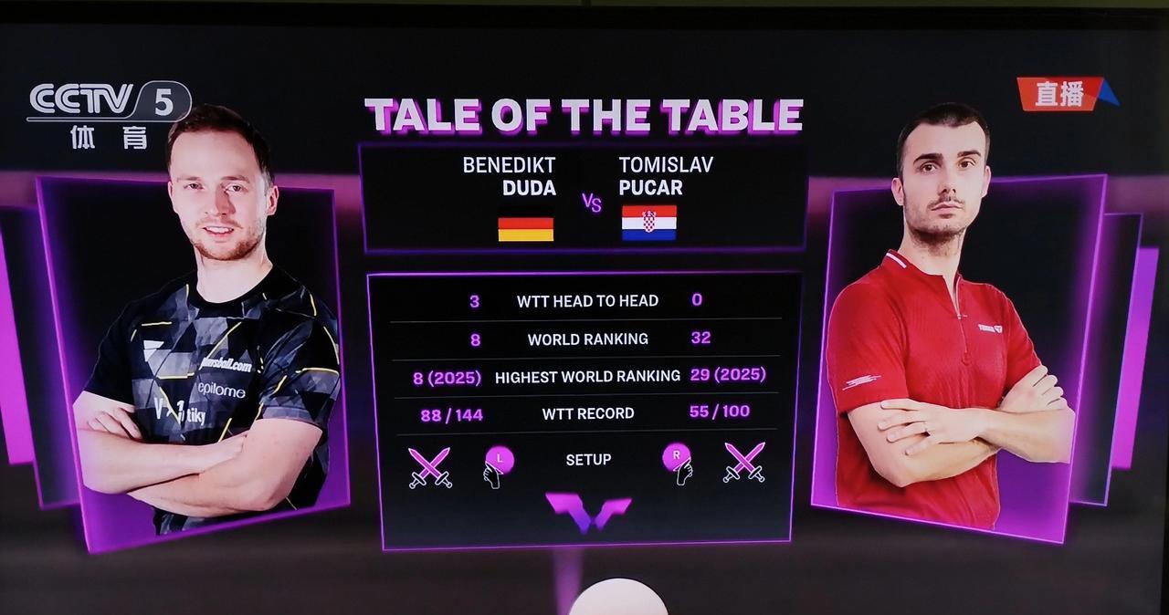 德国老将杜达31岁,左手执拍,世界排名第八位,克罗地亚老将普卡29岁,世界排名第32位。 两人的交手记录达到惊人的12次,杜达11胜1负占据绝对优势,最近一次交手是在2025年瑞典大满贯,杜达3-2战胜了普卡。 这是WTT冠军赛澳门站男单首轮1/16决赛,小伙伴们评论区一起围观哦[吃瓜群众][吃瓜群众]。