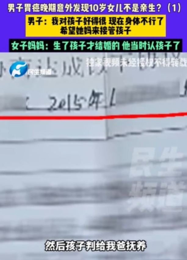 信源: 原文登载于闽南网2025年09月09日关于《男子胃癌晚期,意外发现10岁女儿非亲生:希望前妻来接管孩子,让她有个家,民警:孩子送来派出所两三天了》的报道