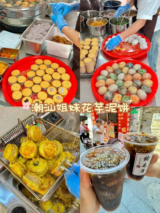 4⃣️潮汕姐妹花芋泥饼:芋泥控闭眼入,皮薄馅大,绵密香甜,一点也不腻。