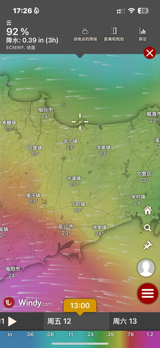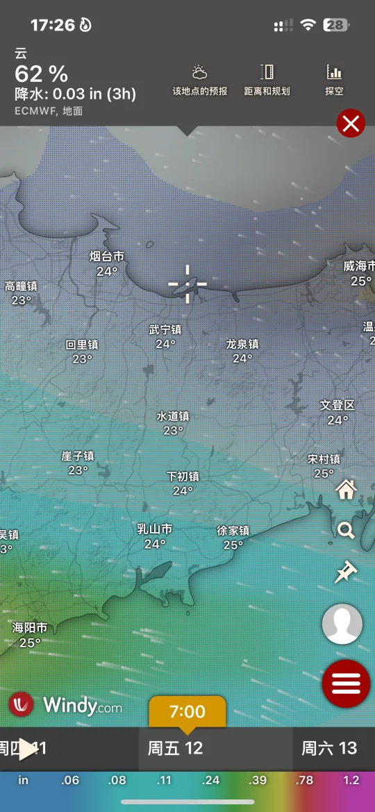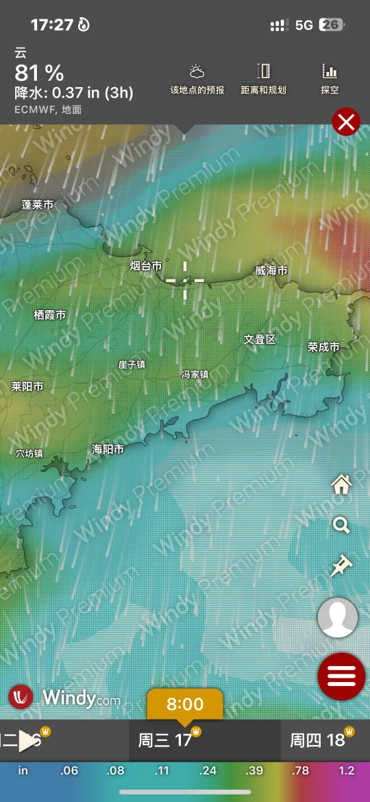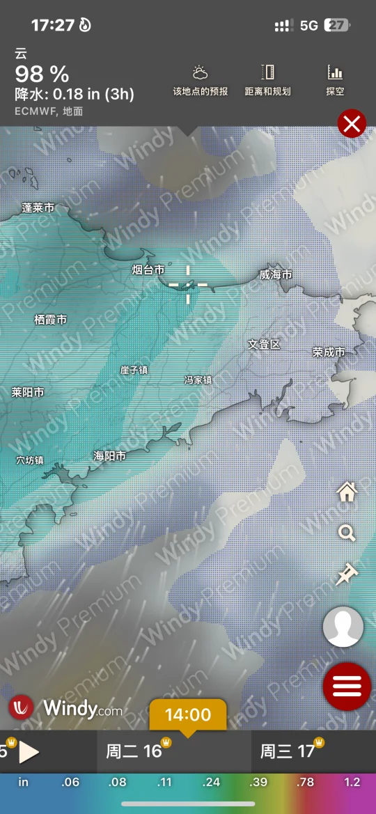 Hi.宝子们好,欢迎来烟台旅游观光!天气基本三天内准确度高!