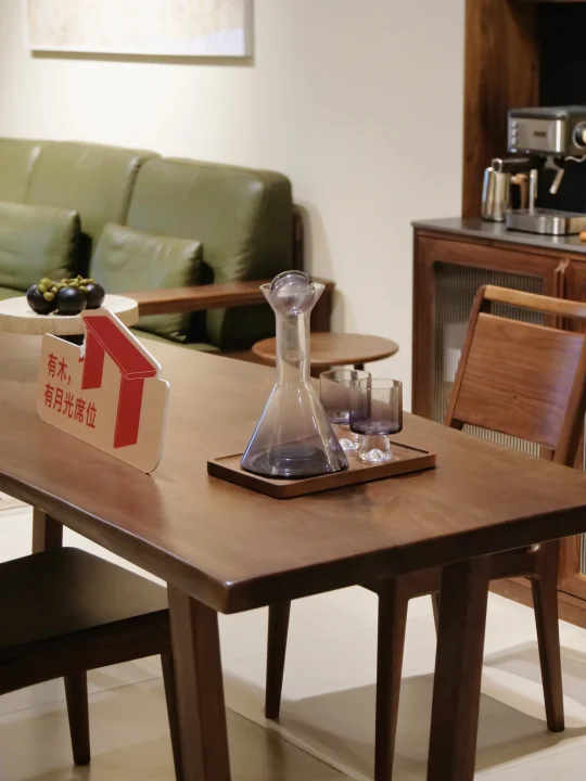 平时在这张桌子上办公读书也很合适,手肘肌肤接触到实木面,能感受到木材的细腻,它既是陪伴我们用餐的餐桌,也是处理工作繁杂的书桌。不用过多装饰,这份浑厚自然的气质,本身就是“山野”最好的表达。
