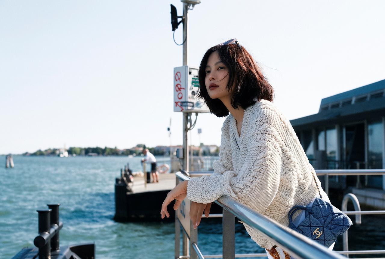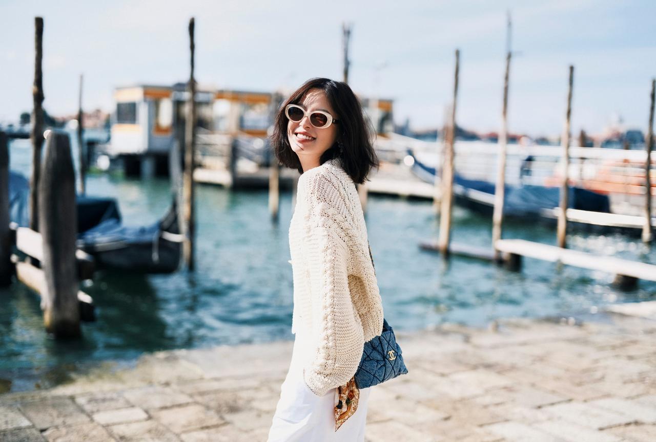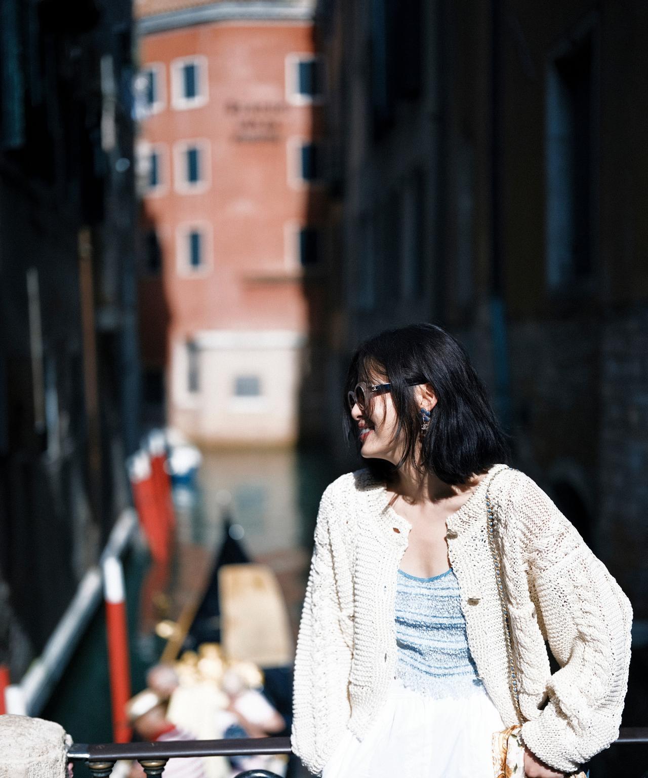 在威尼斯的时光像一场流动的梦,水道蜿蜒处是贡多拉划破的涟漪,阳光落在针织开衫上,