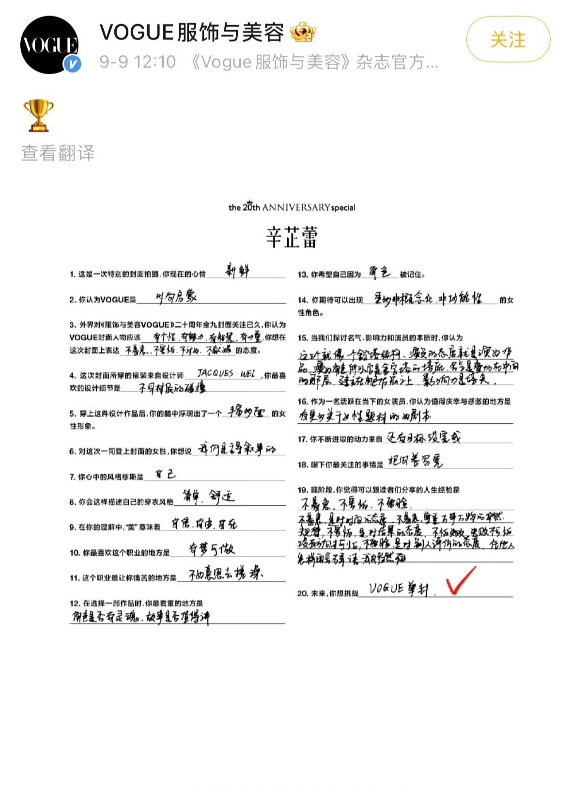 #秋天的第一张照片# 辛芷蕾今年杀疯了!杂志满贯+影后加持,时尚资源直接开挂 谁