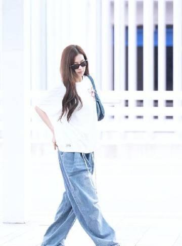 #sana出发纽约时装周# @PineconeSana_湊崎紗夏 出发纽约时装周,白T+牛仔裤+牛仔包,简约韩系穿搭随性又时髦,墨镜一戴,气场全开,期待她在时装周的精彩表现~