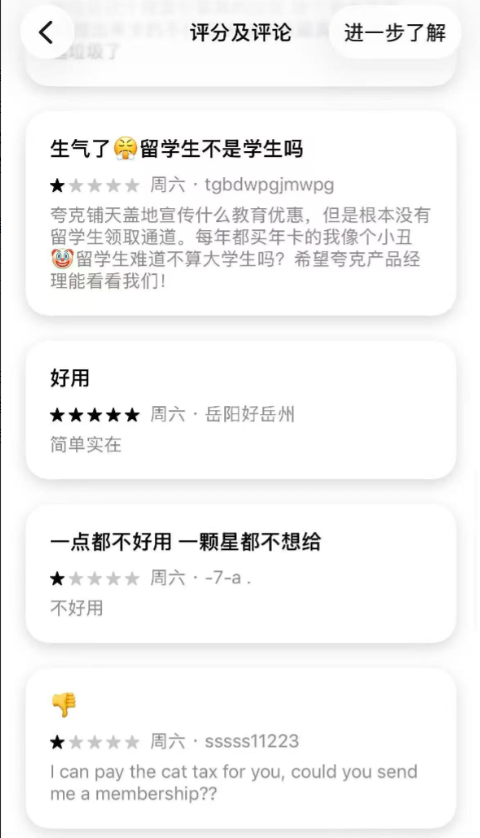 在我看来,中国能吸引这么多留学生,靠的不就是安全、便利和越来越强的教育实力吗?夸克作为国产APP,要是能让留学生也享受同等待遇,不仅是帮了他们,更是给中国形象加分。
