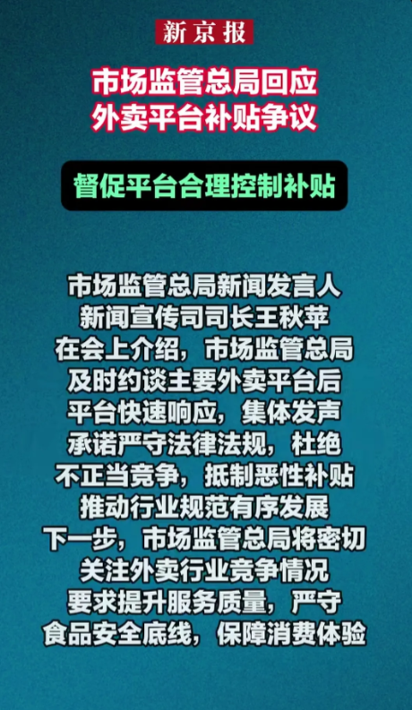 美团果然是上面有大人物,要不然怎么能躲过这次围剿? 明眼人一看就能看出来。之前美团放出大量补贴的时候,那可是追着其他平台往火坑里赶,也没见楼上出来发声。这就造成了美团一家独大,市场份额达到了百分之70以上,形成了事实的垄断,但楼上也没表态,听之任之。 现在楼上一纸文件出来,不就是美团玩不起耍赖了!现在的某团就是当年的滴滴打车,横着走压着饿了吗干,现在被某东神操作吸走大量消费者!楼上竟然见不得打破垄断,还利与民,这是为哪般? 今年美团的市场份额已经从此前约70%下降到目前的65%左右,而饿了么(含淘宝闪购)份额提升至约28%,京东占据约7%。“三足鼎立”的格局已初步形成。 美团2025年第二季度经调整净利润同比暴跌89%,其核心本地商业的经营利润也大幅下滑。补贴战暂停,这给了美团喘息之机,神之操作!意思是你想打,老子不让你们打!