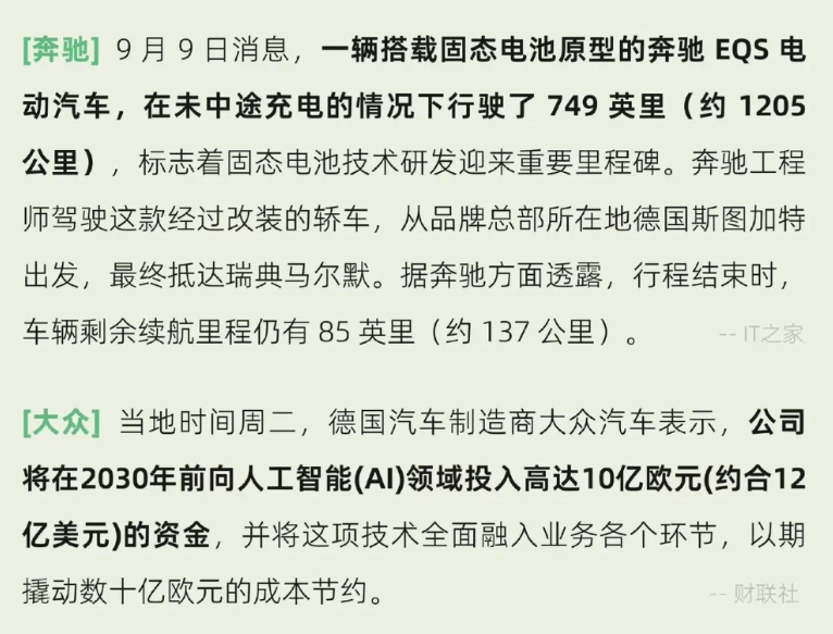 我们国内说的是固态电池还早,结果奔驰人家就已经弄上了,其实6月份的时候比亚迪在公开场合也说过他们的测试,上面已经装了固态电池,但是目前没有公开过测试的数据。