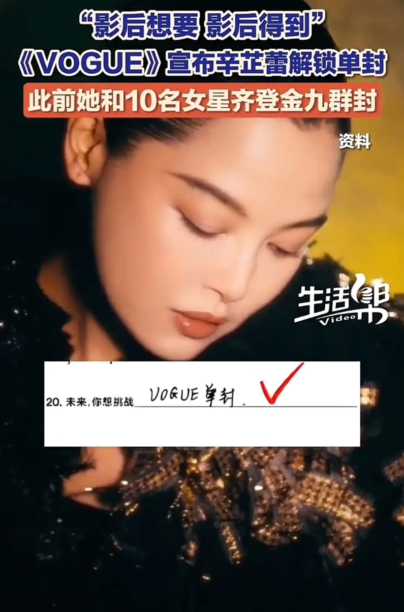 而杂志也让每个人手写答卷,其中一题是未来想挑战的,辛芷蕾说:“未来想挑战VOGUE单封。”