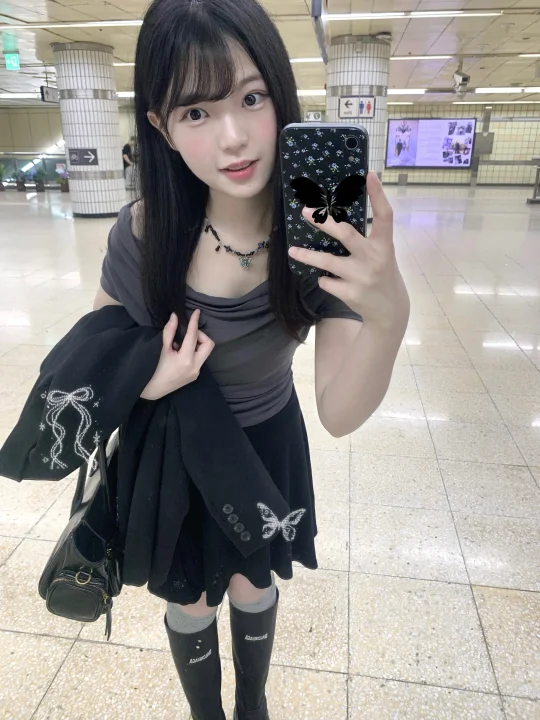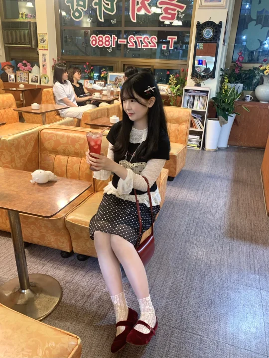 窗边的风裹着浅淡的光,裙摆随呼吸轻晃。黑衫露肩勾出松弛的软,紫蕾丝漫过膝弯,把日