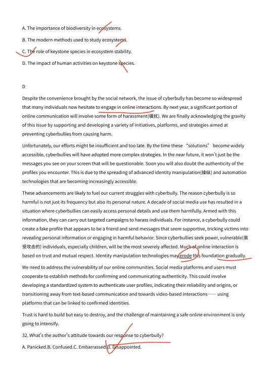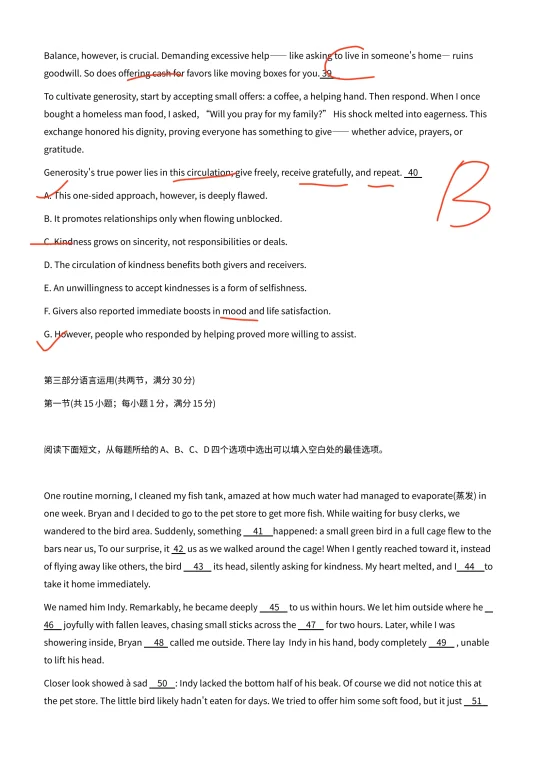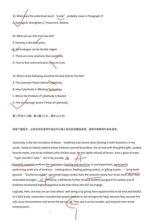 总得说来,本套试题,阅读和七选五还算可以,完型直接拉跨。不过有兴趣的同学还是可以做一下,体会一下阅读题目的新设计。