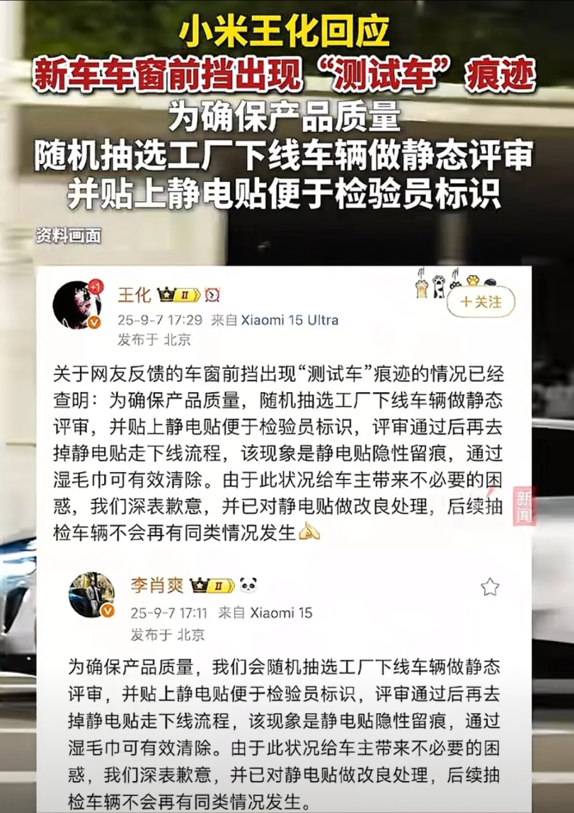 买到小米测试车的应该感到幸运,因为有“测试车”痕迹的说明是真测试过。小米高管已经回应,这是随机抽检做静态评审的,有“测试车”痕迹说明这车被抽检过,而且评审合格,相对于没有测试的更有保障。那个痕迹什么也不影响,用湿毛巾一擦就没有了。而且小米自己也会改进,以后出厂的时候不会留下痕迹了。