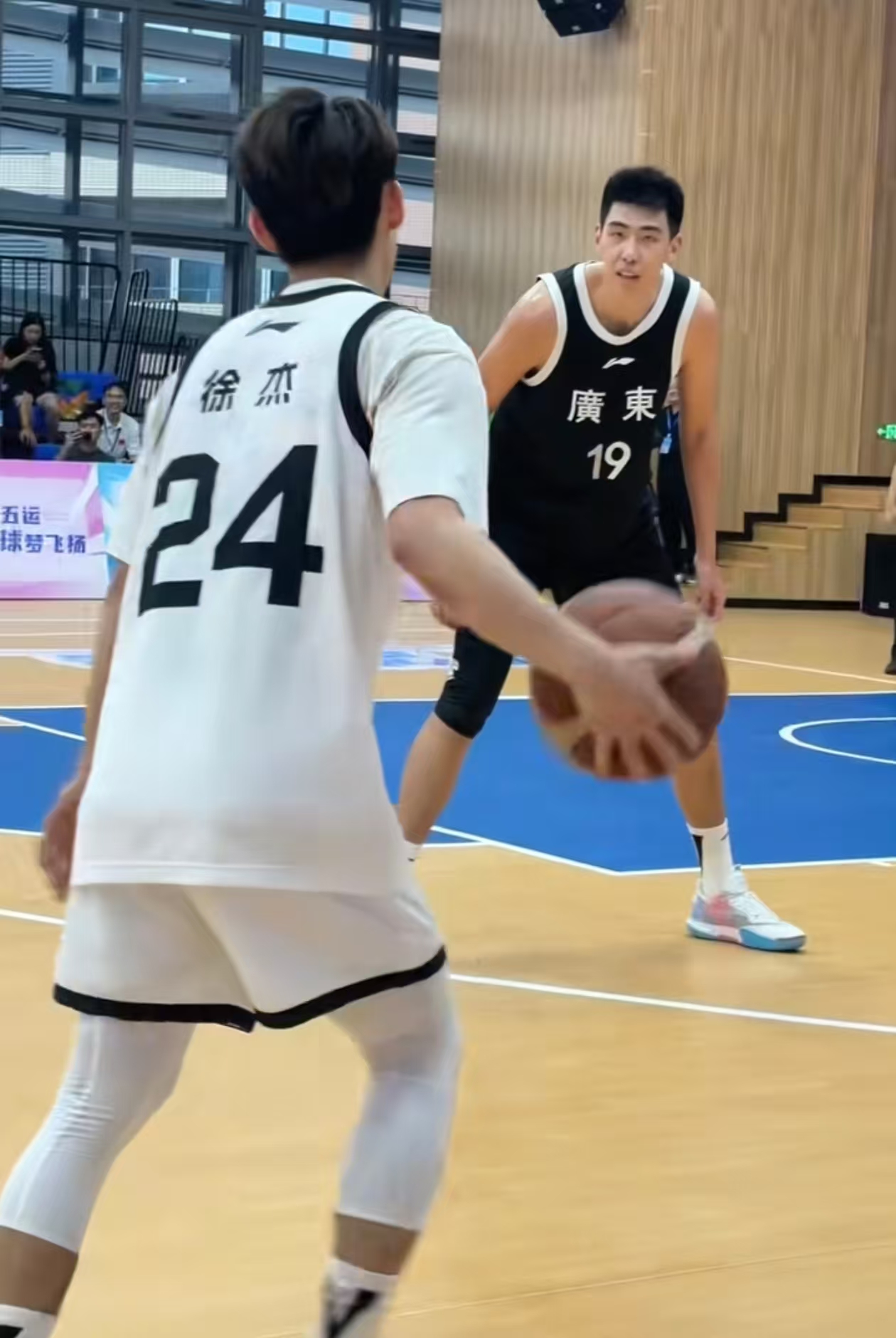 粤港澳大湾区全运会开赛在即,广东男篮各组别的队伍也在全力备战,已经打了很多的热身赛,今日广东宏远MC发布了U22组跟成年组的训练赛,看到统计的比分U22组还略胜一筹,不过这只是训练赛,应该对抗强度不大,最后还有扣篮PK,广东宏远前两大中锋还玩起1V1单挑,徐杰是一点不客气,背身单打徐昕后仰轻松打进。