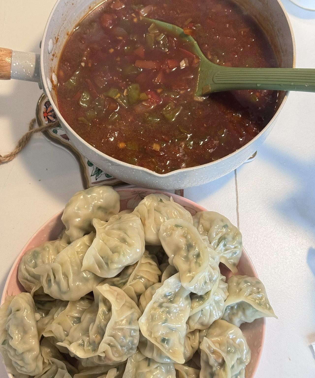 进家就看到婆婆在煮饺子, 我说:妈,咱前两天不是刚吃过么, 你怎么又包饺子了。