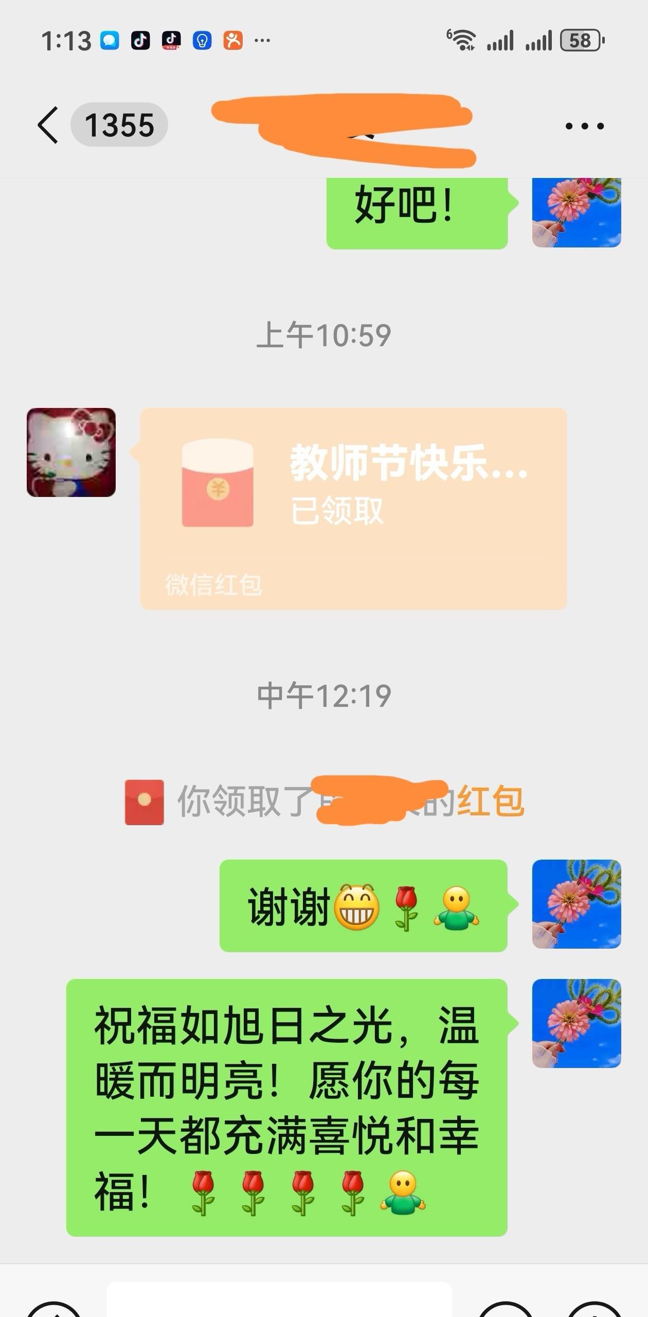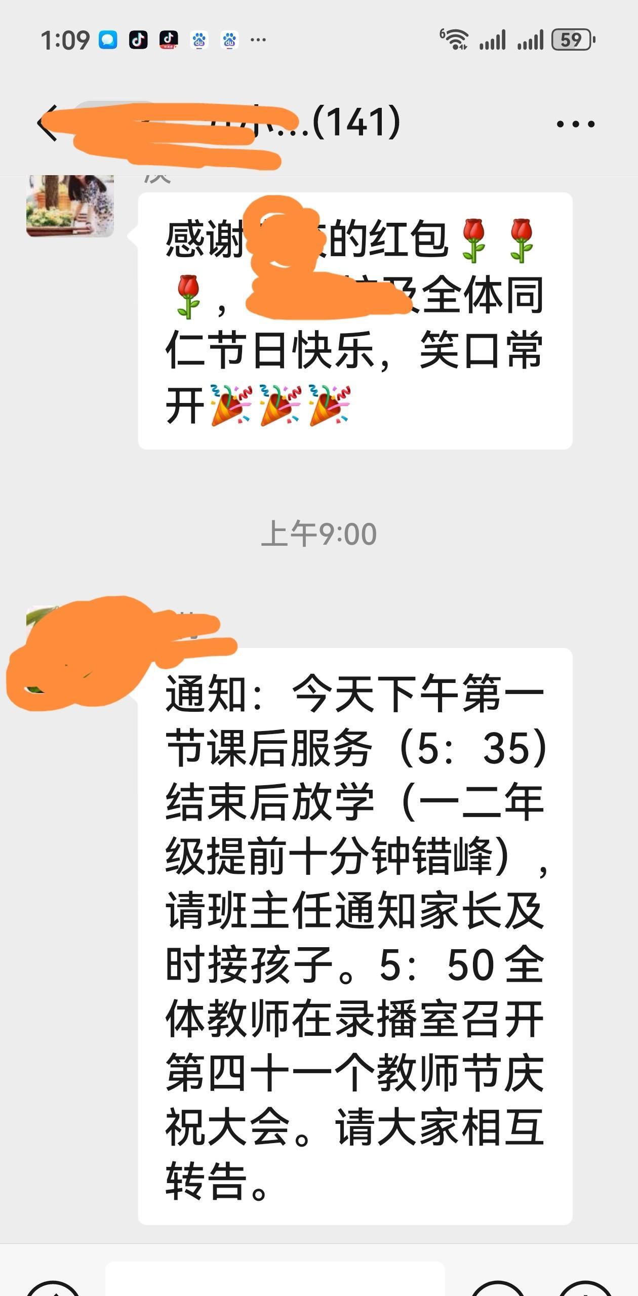 今天是教师节,我收到了一个好朋友发的红包。 教师节这天,校长在群里发