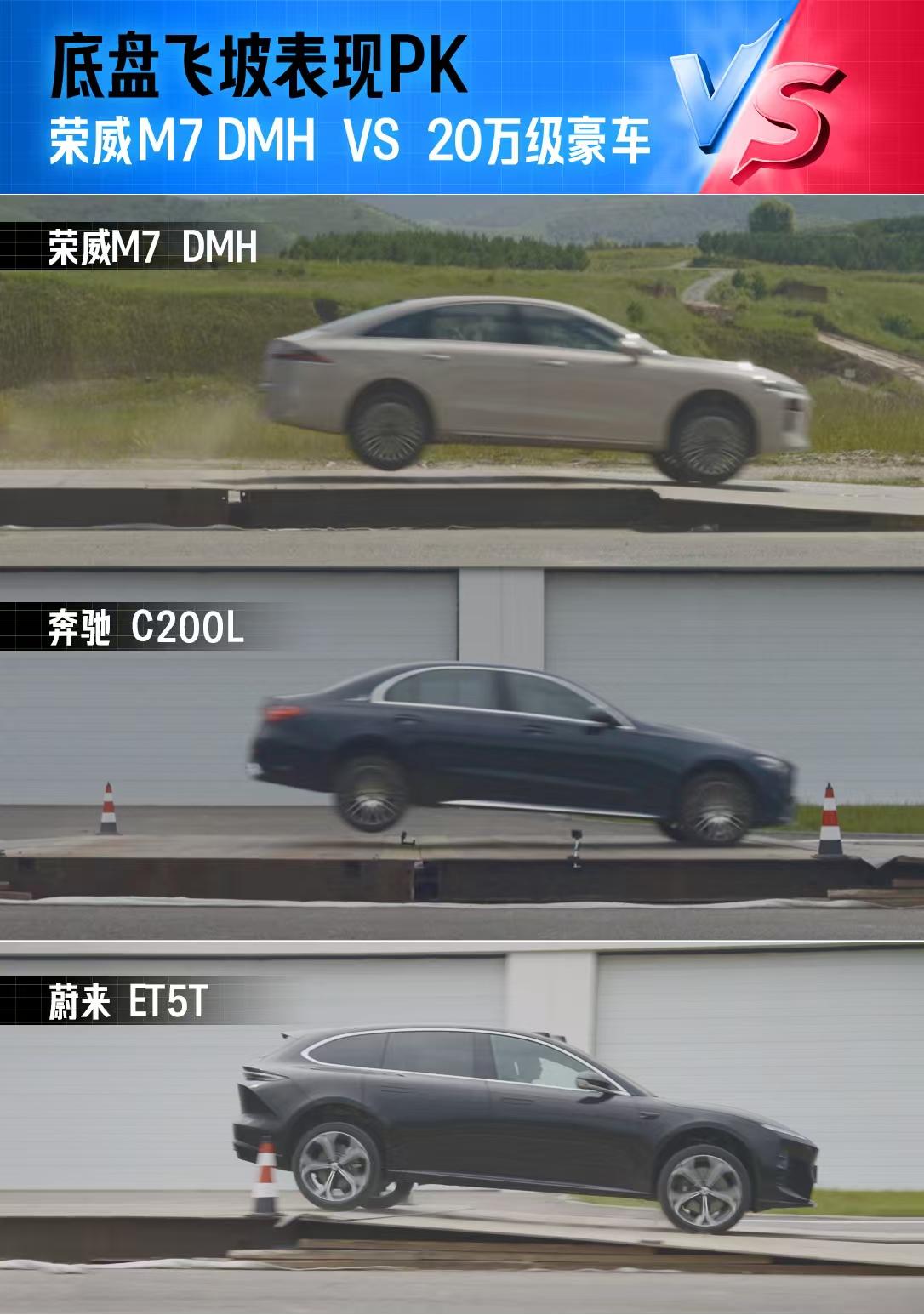 荣威M7 DMH搭载10万级唯一AI底盘 软硬件全栈自研mCDC+AI预瞄 相比同级车型的普通悬挂,在过减速带、颠簸路、飞坡、过弯等路况,能做到过坎不颠、过弯不晃、长途不晕 堪称10万级“飞坡王” 权威媒体评测,飞坡不论整体姿态、多余滤震控制、后排乘坐人员感受、还是量化G值波动,表现超越奔驰C、蔚来ET5T这些20万级豪车