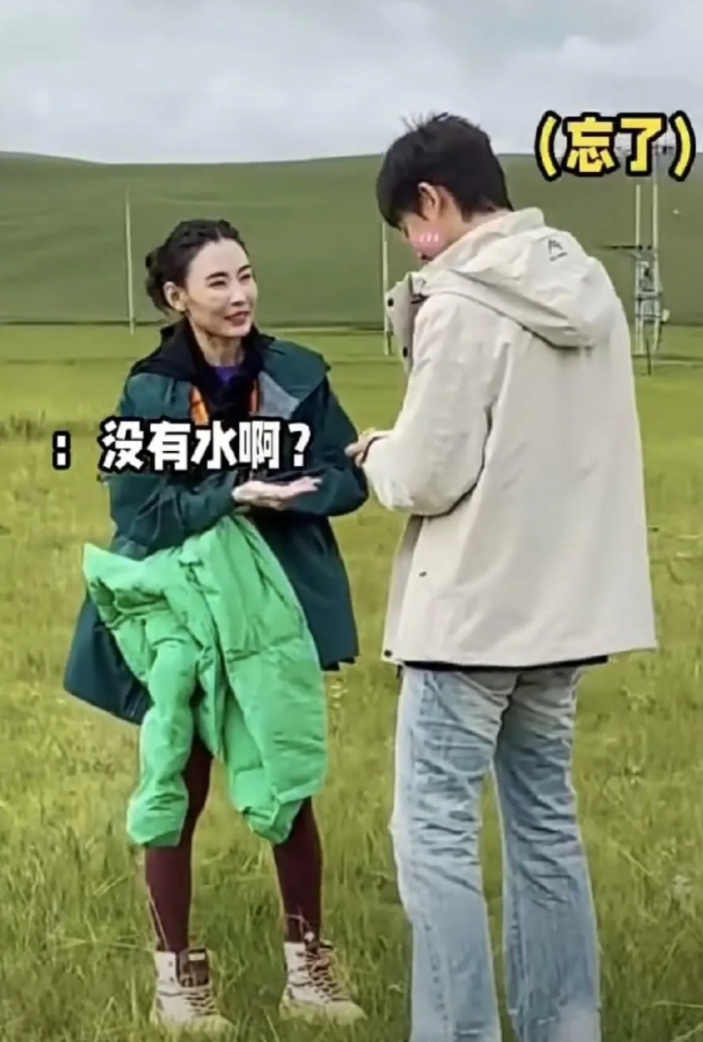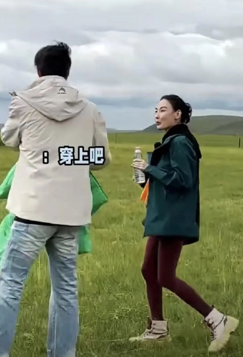 45岁的张柏芝在草原上生病,25岁的柯淳二话不说送药照顾,俩人站一块,哪像搭档?