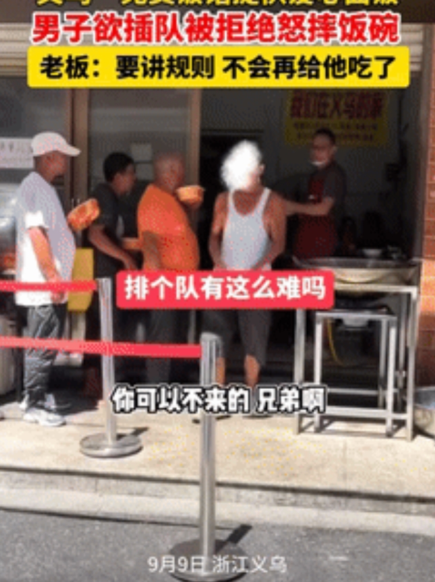 “干的漂亮!”浙江义乌,一男子开了一家免费饭馆,专门为一些基层工作者,外来务工人员提供服务,不料一个男子看人太多就想插队,被拒绝后气的摔了饭碗,老板直接回怼:要讲规则,以后不要再来了,网友:吃免费饭都要插队,这不是社会渣子么? 据杭州网9月10日的报道,义乌这家店专门给环卫工人、外卖小哥这些辛苦人提供免费饭菜。 面馆门口排着长队等着领饭,那个穿白背心的男人突然挤到前面,把饭盒往老板手里一伸就要拿饭,老板好声好气跟他说要排队,结果这人不光不听,接过饭盒啪的一声摔在地上,然后扭头就走。 这家爱心面馆其实挺不容易的,从开始做免费餐,基本靠社会上的好心人捐款捐物维持,老板说他们每天要准备上百份饭菜,专门给那些干活辛苦又舍不得花钱吃饭的人。 整个过程被后面排队的人用手机拍了下来,老板后来接受采访时说,他们做免费餐食是帮助有需要的人,但前提是互相尊重,排队是最基本的礼貌,这种人以后坚决不接待。 再好的心意也得有底线,就像老板说的,他们帮助的是那些懂得感恩、守规矩的人,不是给那些自私自利的人占便宜。 网友们看了视频后,基本一边倒地支持老板的做法,不管是不是免费饭,都得讲规矩,男子插队不成,就恼羞成怒,这种人就是贪小便宜,人品堪忧,甚至不值得帮。也 此前这样的事情还不止一例,比如餐馆给几个带孩子的大妈免费续面,结果她们吃完了还要打包带走,最后闹得不欢而散,这些事都说明,做善事也得有原则,不能谁想占便宜就给谁。 现在社会上好心人不少,做公益的也越来越多,但总有些人把别人的善意当理所当然。免费的饭菜可以吃,但尊严不能丢,别人的帮助可以接受,但规矩不能坏。 老板坚持原则的做法,其实是在保护更多真正需要帮助人的权益,大家有什么看法呢? 信息来源:杭州网2025年9月10日