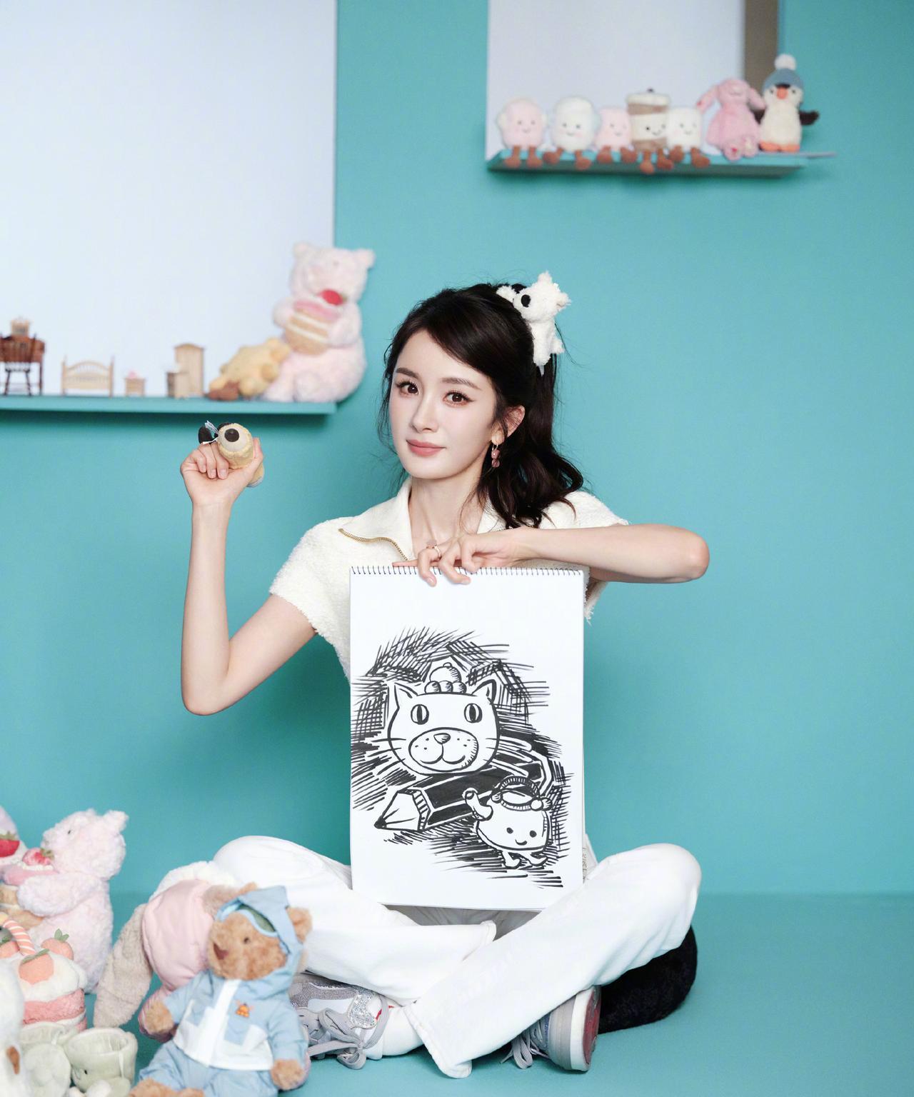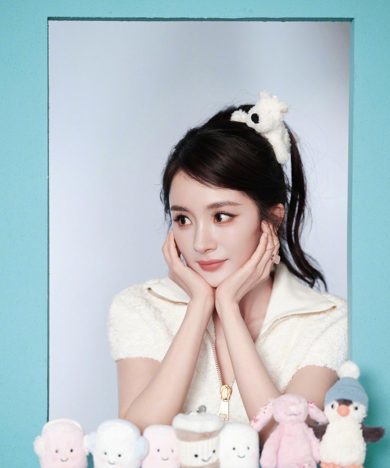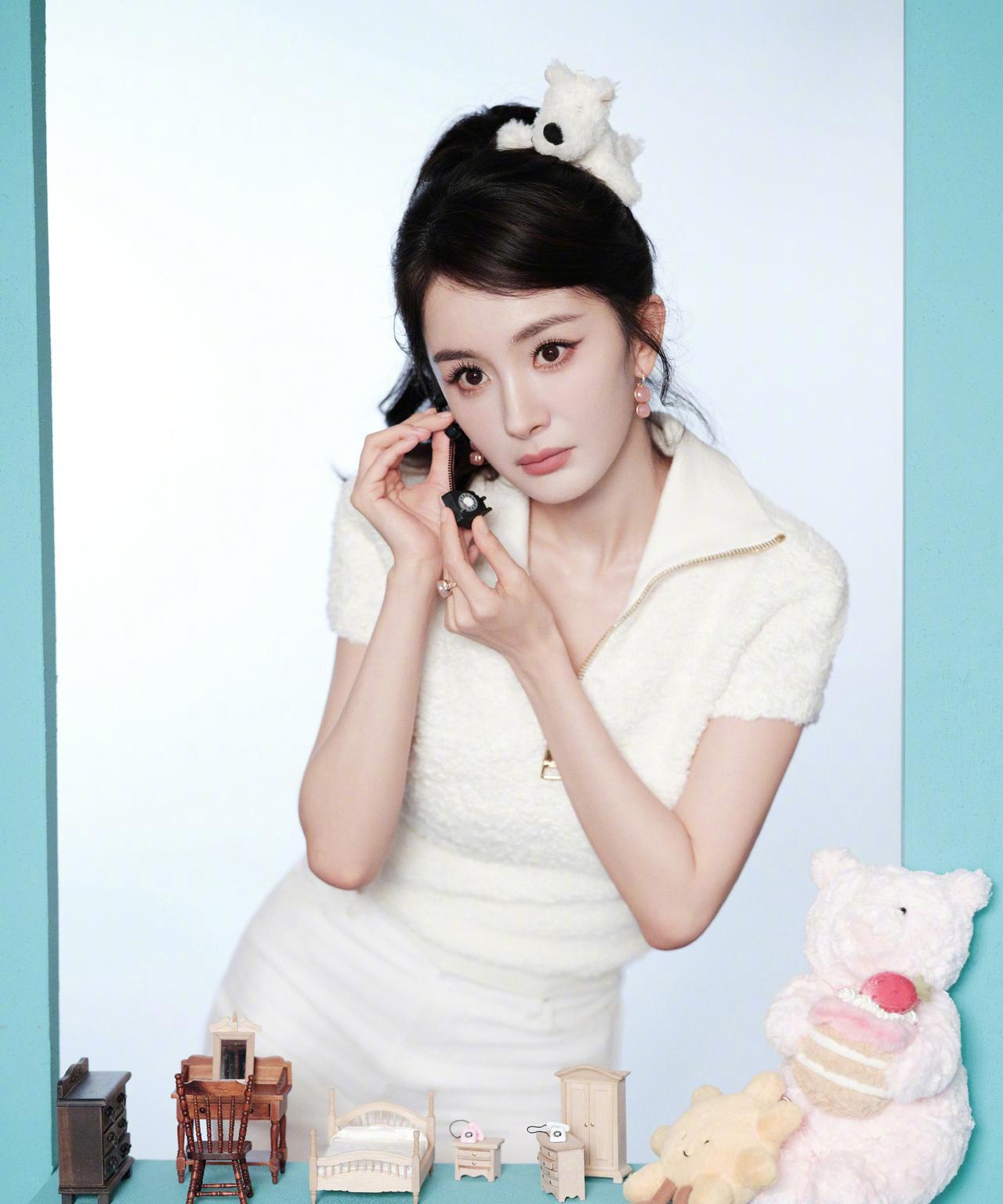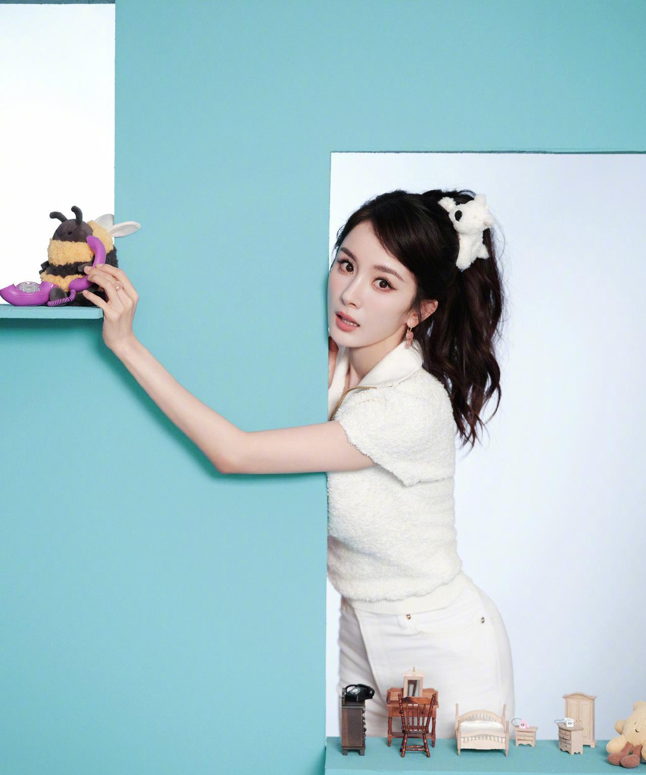 #杨幂#闯入满是可爱小物的童趣世界,毛绒小饰缀在发间,和迷你家具、软萌玩偶同框,每一个互动都像在把快乐轻轻拆解,满是灵动俏皮的模样~