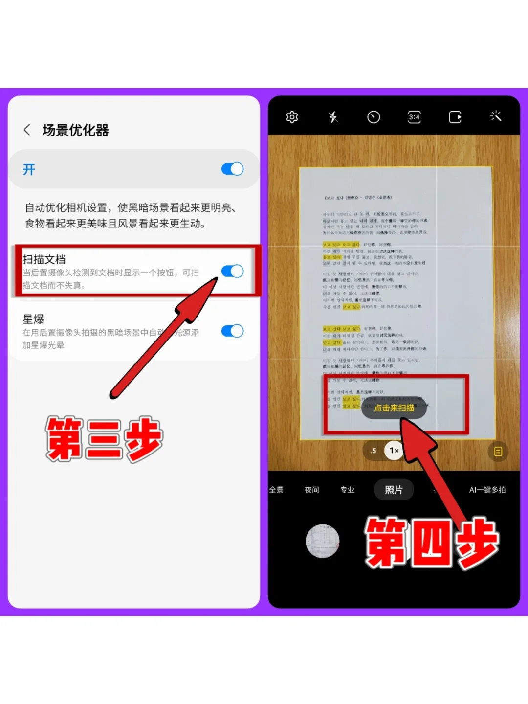 无论在工作中还是生活中我们常会遇到一些需要扫描件的场景,如工作文件扫描,学习资料扫描等等,有时遇到一些紧急情况,身边碰巧又没有打印店,就很头大,那今天教大家如何通过我们的三星手机将纸质文稿或图片变成扫描件形式,方法超简单👉【建议收藏】后期一定会用到❤❤❤