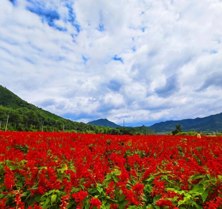 京郊最多彩的“调色盘”花海 秋风有信,秋花盛开,金秋九月,北京延庆四海镇数千亩秋花迎着秋阳纵情绽放,红色一串红、金黄色的油葵和百日草,与紫色马鞭草形成的花海交织成梦幻画卷,形成京郊最多彩壮观的“调色盘”花海。 北京延庆四海镇“调色盘”花海,呈现依山就势的梯田式布局,面积约1000多亩,花期为8月下旬至10月初。目前已进入最佳观赏期。各色秋花顺着缓坡依次铺展,亮丽的一串红一簇簇挺立,鲜红的花穗像跳动的火焰,金黄油葵田里,金灿灿的花盘朝着太阳,紫蓝色的马鞭草花穗连成一片,秋风拂过,阳光下绚丽多彩的花浪轻摇,远处风车静静转动,仿佛走进童话世界,花海、风车在远处青灰色山峦的映衬下,仿佛油画般的“莫奈花园”! 北京延庆四海镇镇“调色盘”花海,目前已成为北京乃至华北地区知名的生态休闲品牌,这里不仅有“调色盘”花海的别致之美,连空气里都飘着清新的花香。而且周边的景致也很美,从马鞭草园往山上走,很快就能看见九眼楼长城的轮廓,青灰色的长城城墙,和山下的梯田花海形成“刚柔相济”的难得一见的壮美景观,令人留连忘返。 来这里游玩不仅免费,而且交通便利,自驾可沿八达岭高速至延琉路即可抵达。周边有配套的民宿等旅游资源,很适合拍照、徒步及亲子活动,上午9-11点、下午3-5点光线最佳。不过,花田秋天的蚊子很猖狂,建议穿长裤、带防蚊药剂。 #晒图笔记大赛#