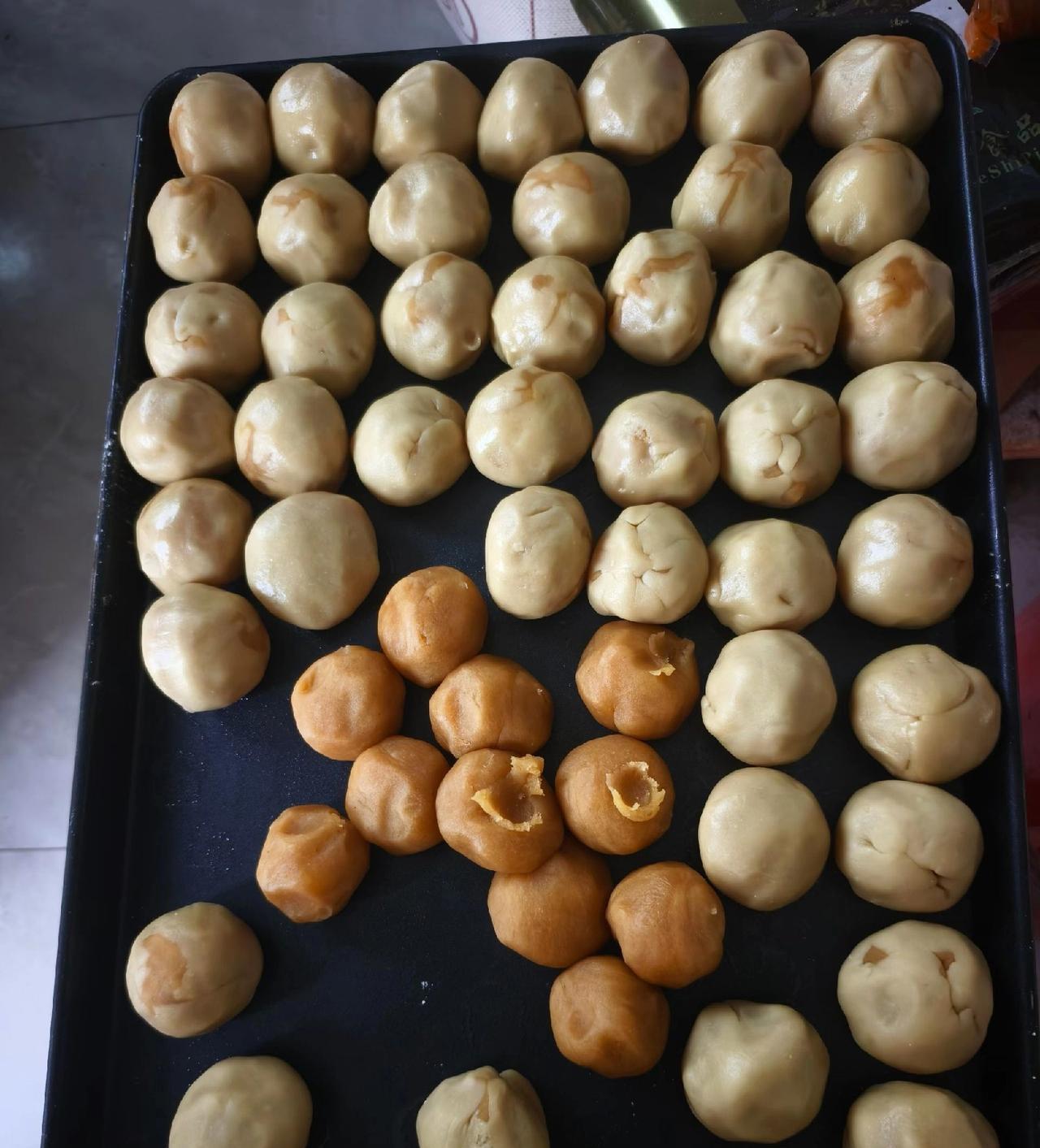 看看我做的什么! 不知道你们有没有亲手制作过? 快中秋节了,亲生制作咸蛋黄月饼,
