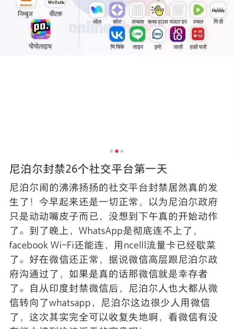 尼泊尔政府已经封禁 Facebook、Instagram、YouTube、Twitter、WhatsApp、Telegram 等在内的 26 个社交平台。