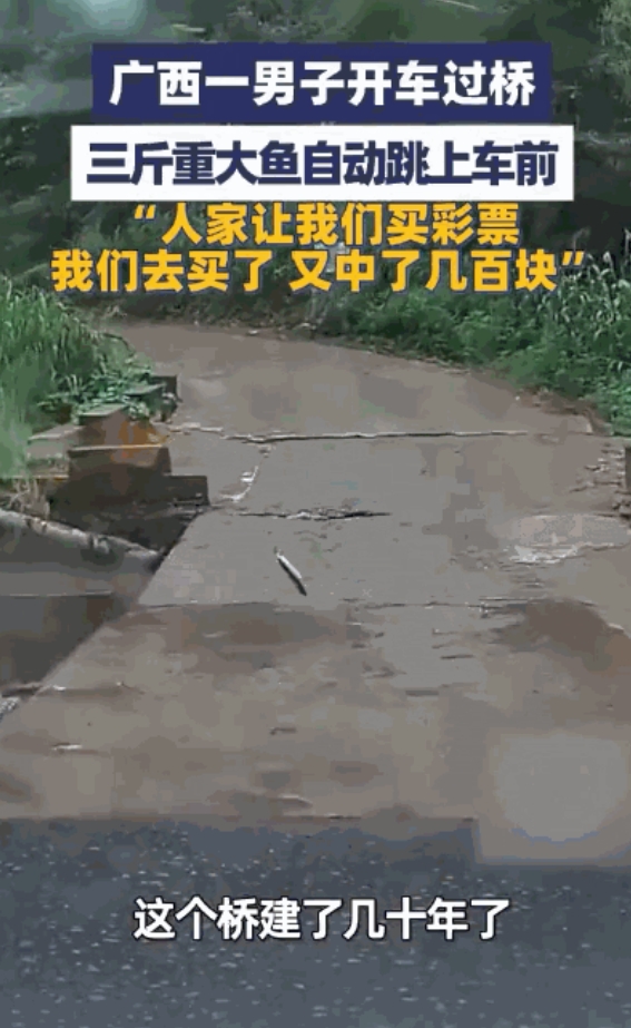 这就是命!广西桂林,一男子过桥遇“拦路鱼”,3斤重活鱼自己跳上车前,男子激动的下车捡鱼,朋友见他运气这么好,就建议他买张彩票,没想到真中了!网友:运气来了挡也挡不住![微风]